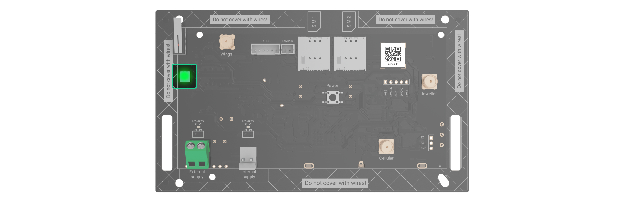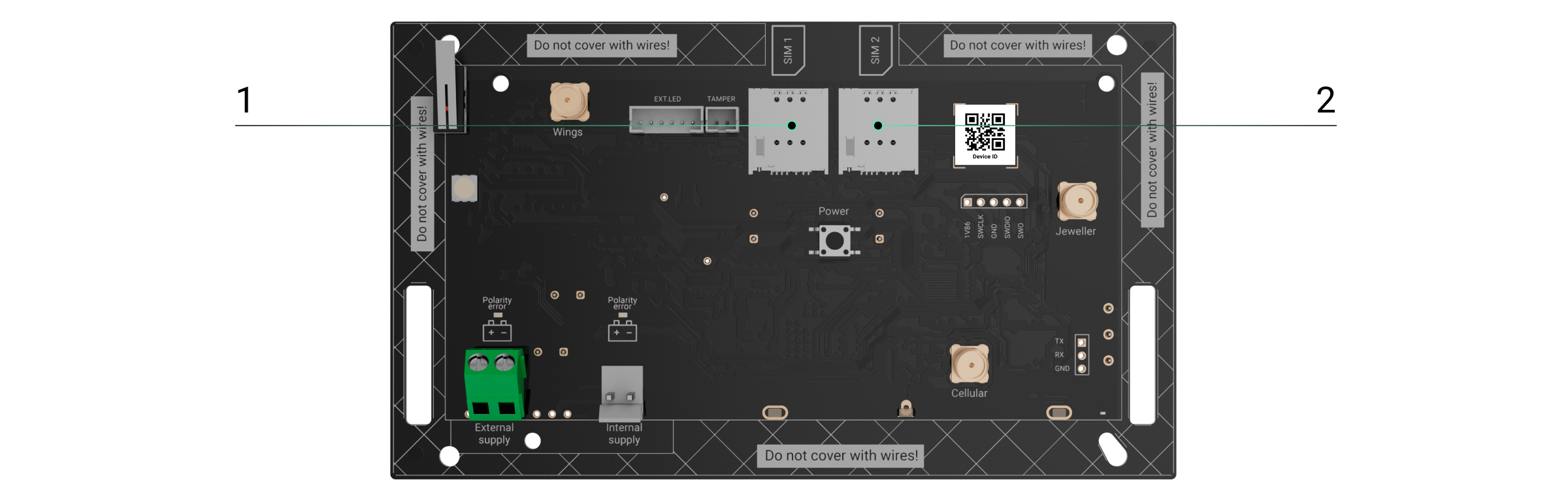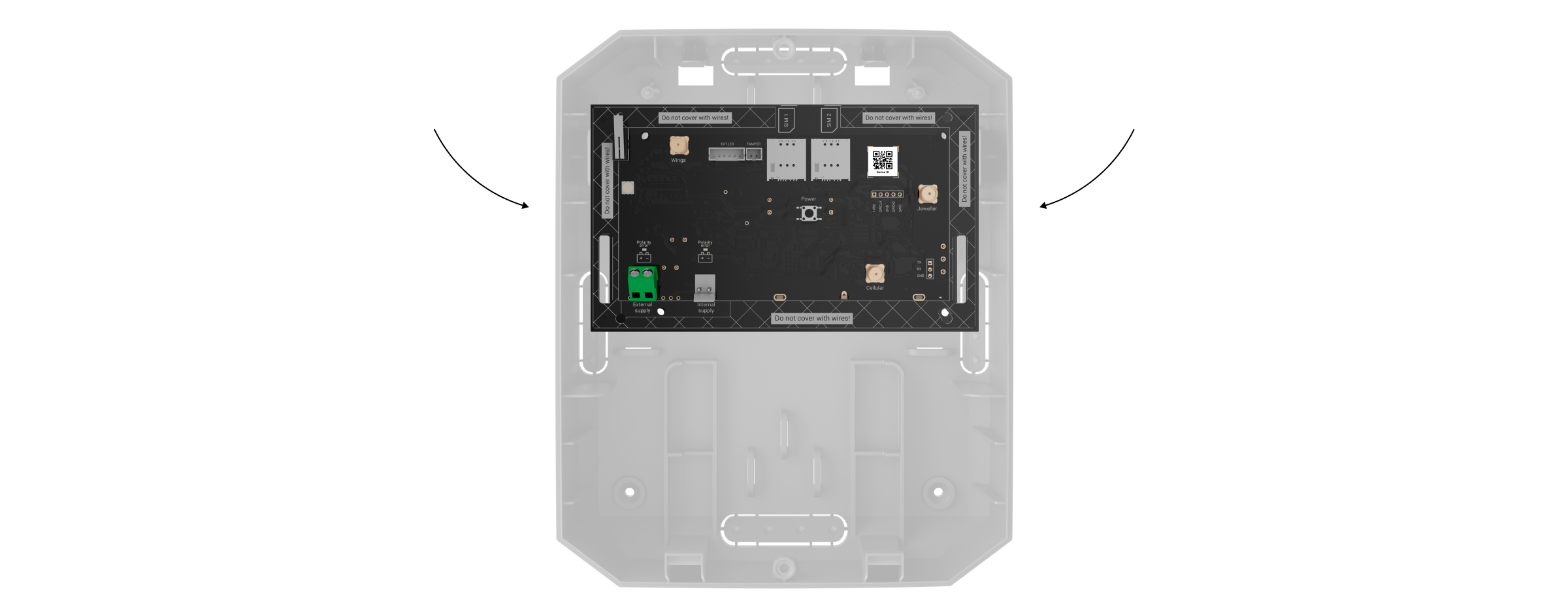 Hub BP Jeweller verfügt über zwei SIM-Kartensteckplätze für die Verbindung mit dem Ajax Cloud Server. Dadurch kann das Gerät gleichzeitig mit zwei verschiedenen Mobilfunkanbietern verbunden sein. Wenn einer der beiden nicht verfügbar ist, schaltet die Hub-Zentrale automatisch auf einen anderen um und informiert die Leitstelle und die Benutzer des Systems.
