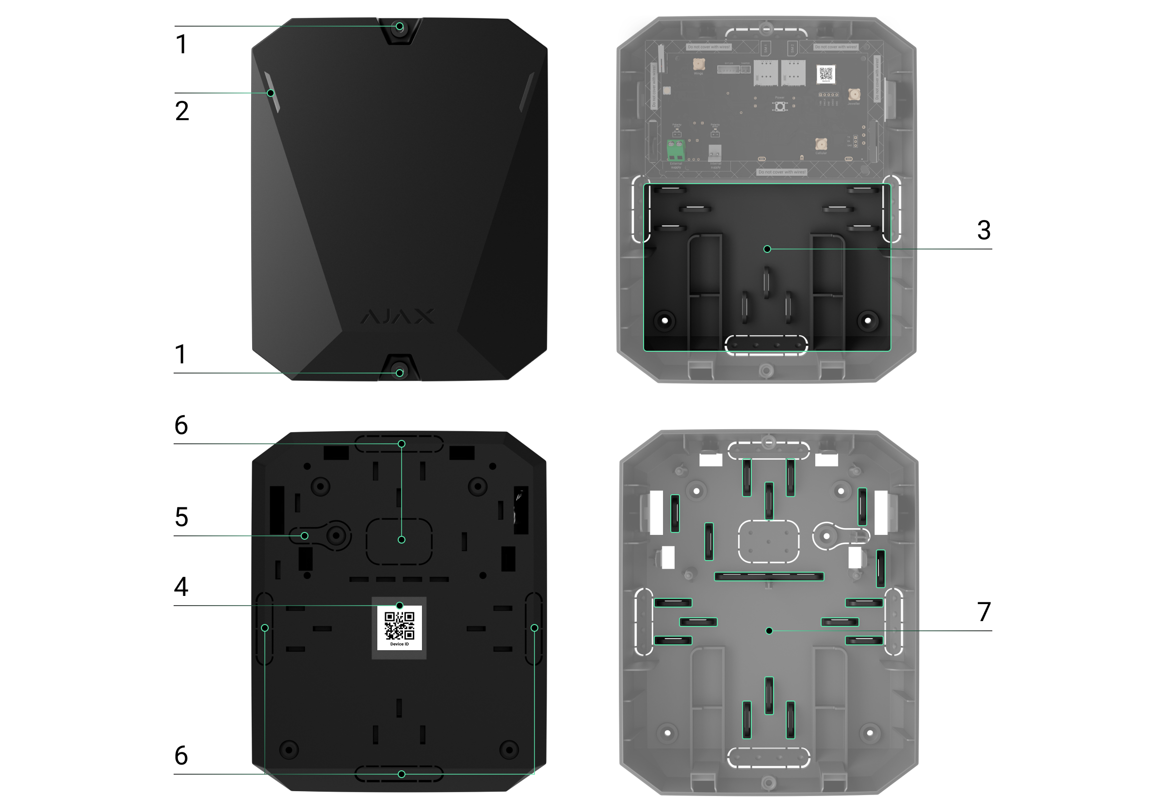 - Perforierter Teil des Gehäuses. Es ist notwendig, dass der Sabotagekontakt ausgelöst wird, wenn versucht wird, das Gerät von der Oberfläche zu lösen. Nicht abbrechen.