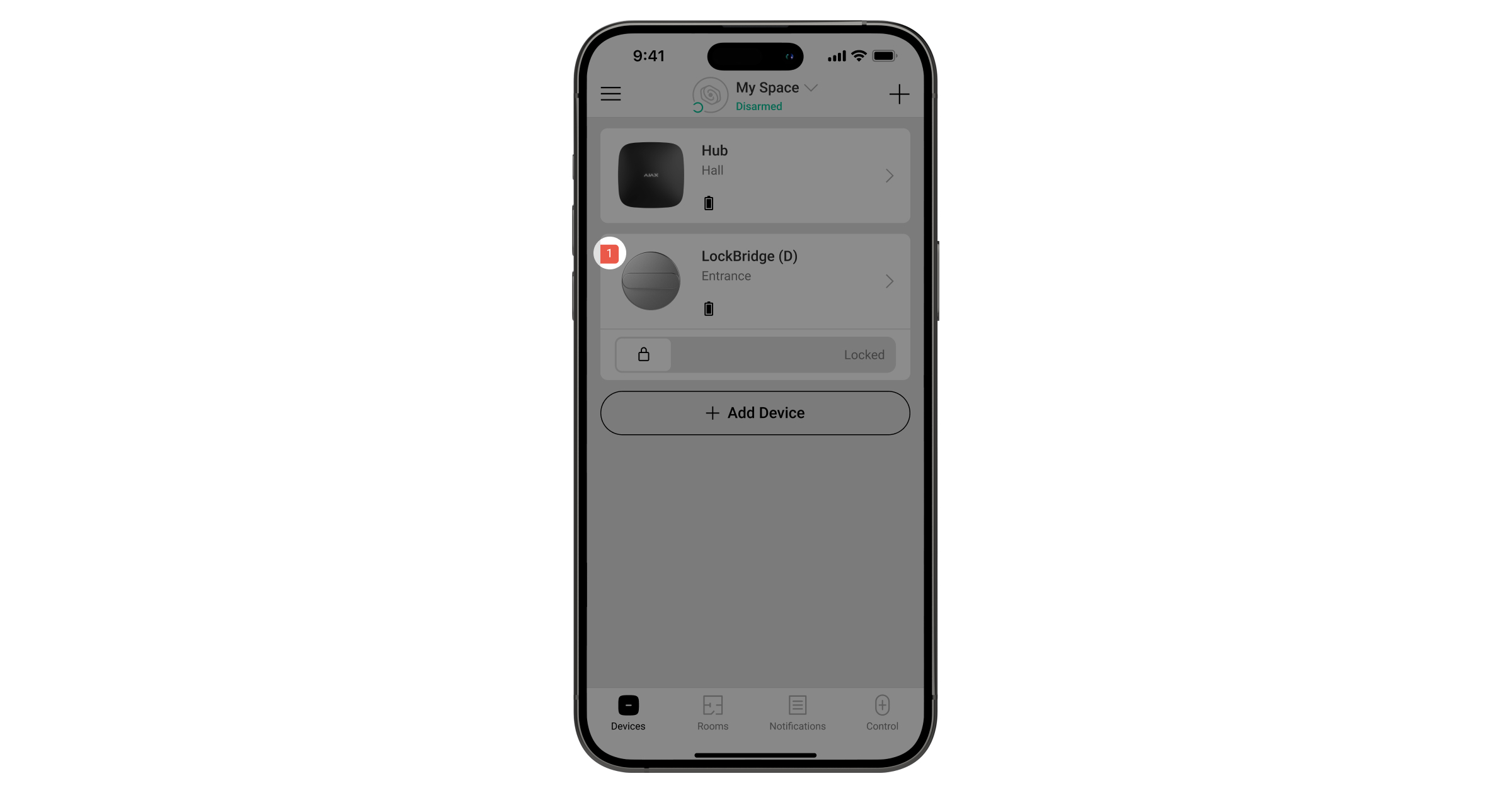 - Öffnen Sie eine Ajax App. Wählen Sie den Space aus, dem Sie das Gerät hinzufügen möchten.
