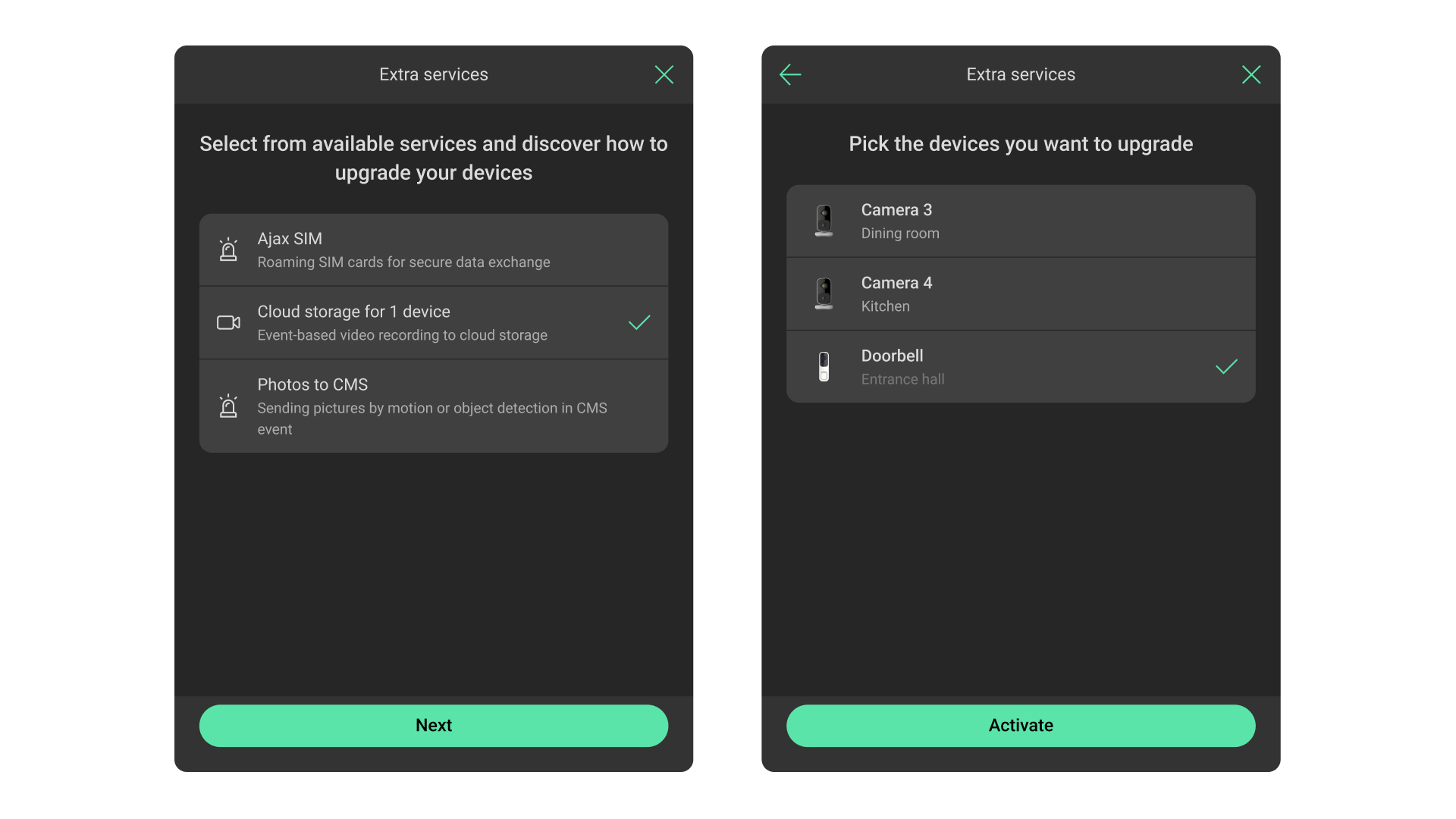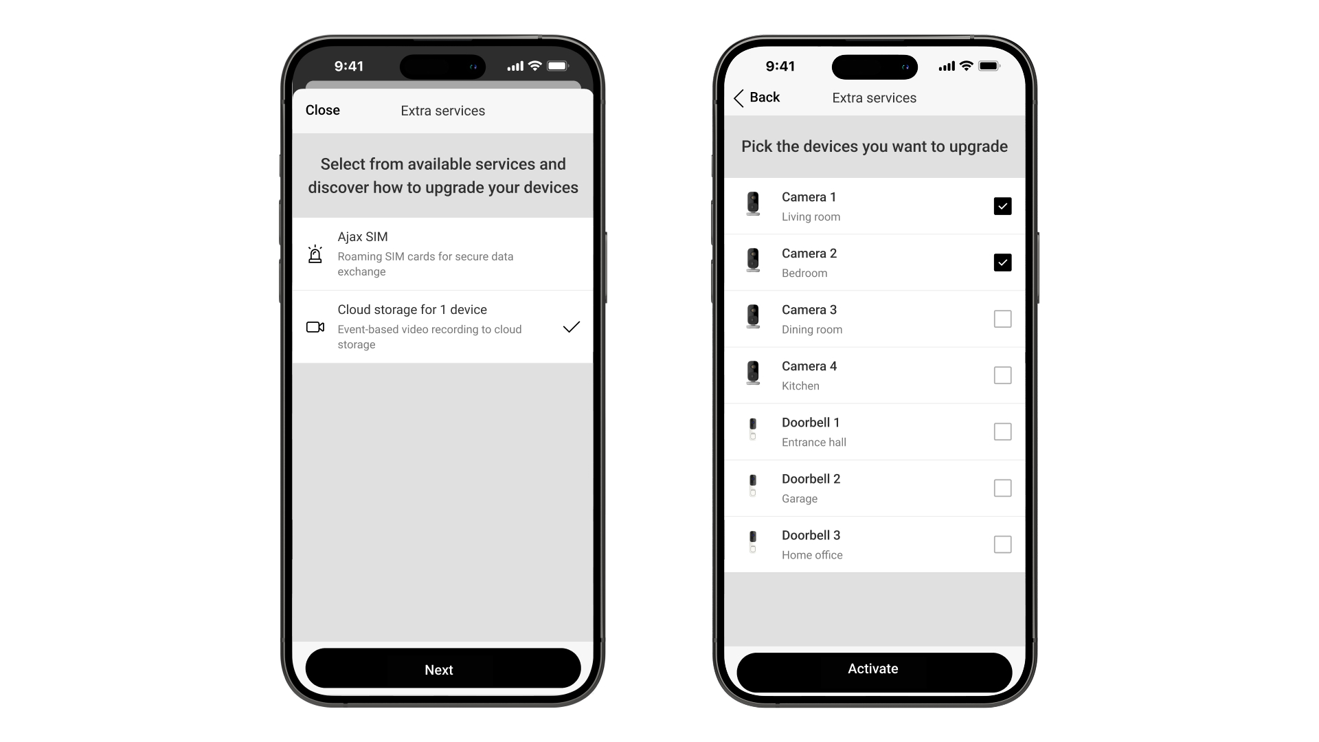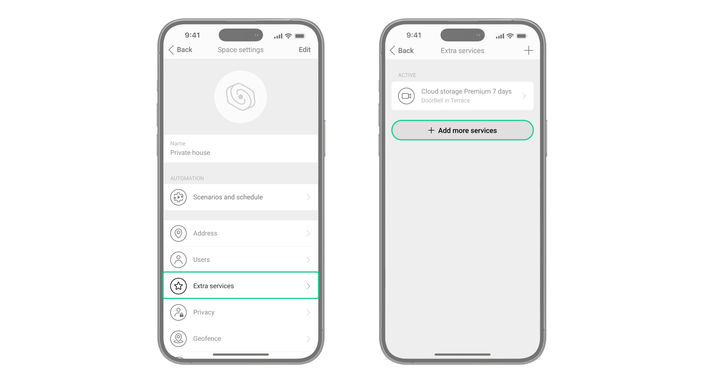 - Ajax Cloud Storage (for IndoorCam and DoorBell only).