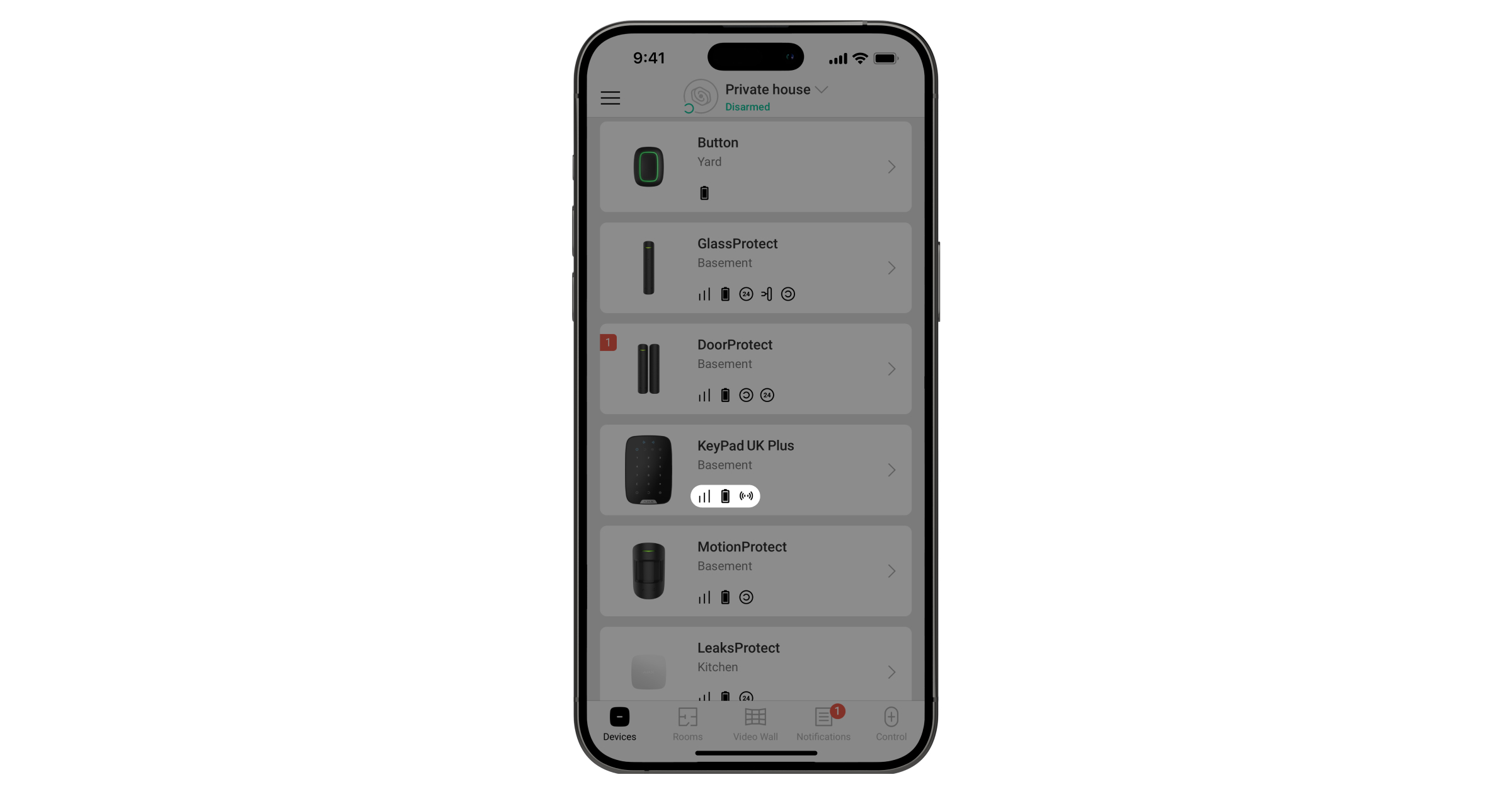 The Jeweller signal strength is determined by the number of undelivered or corrupted data packages over a certain period. The icon on the Devices tab indicates the signal strength: