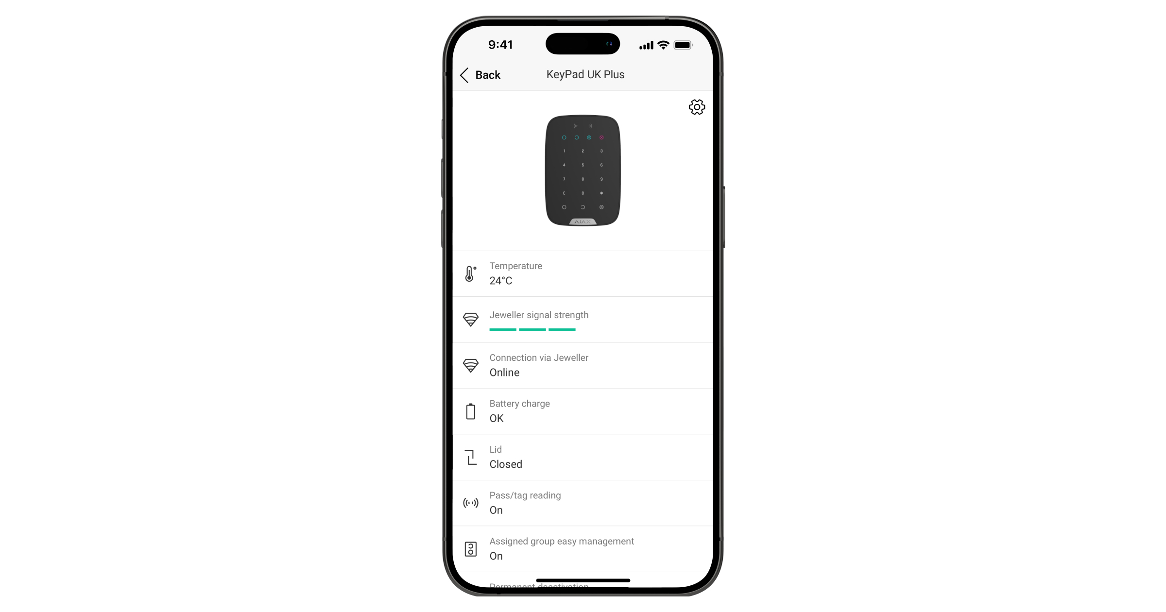 - Temporary activation/deactivation of KeyPad UK Plus Jeweller.