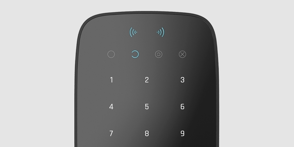 KeyPad UK Plus Jeweller has LED indicators showing the current security mode and keypad malfunctions (if any). The security status is displayed only when the keypad is active (the device backlight is on).