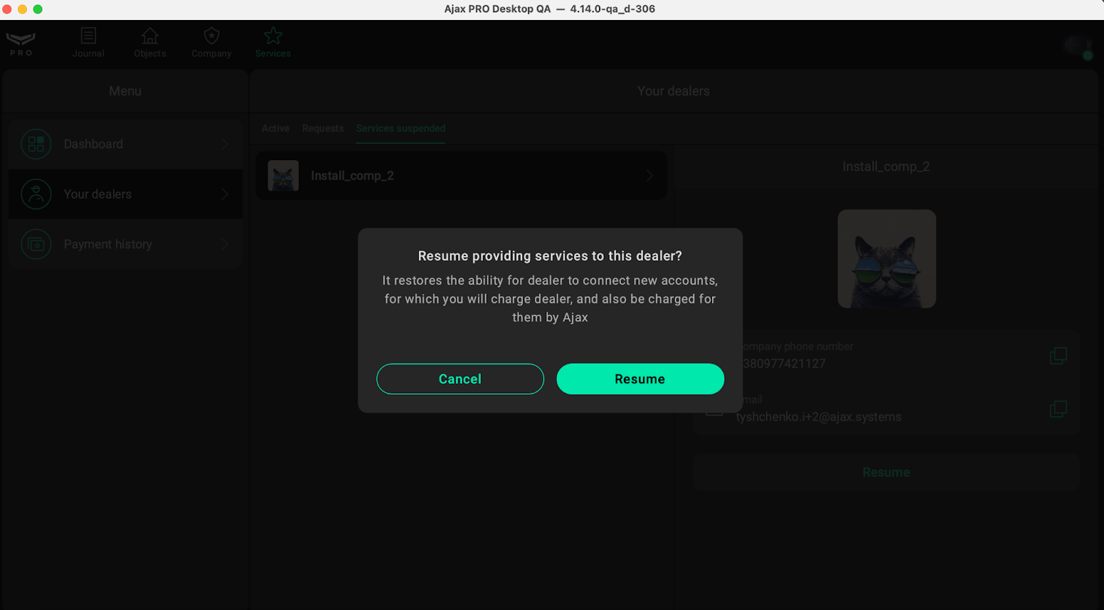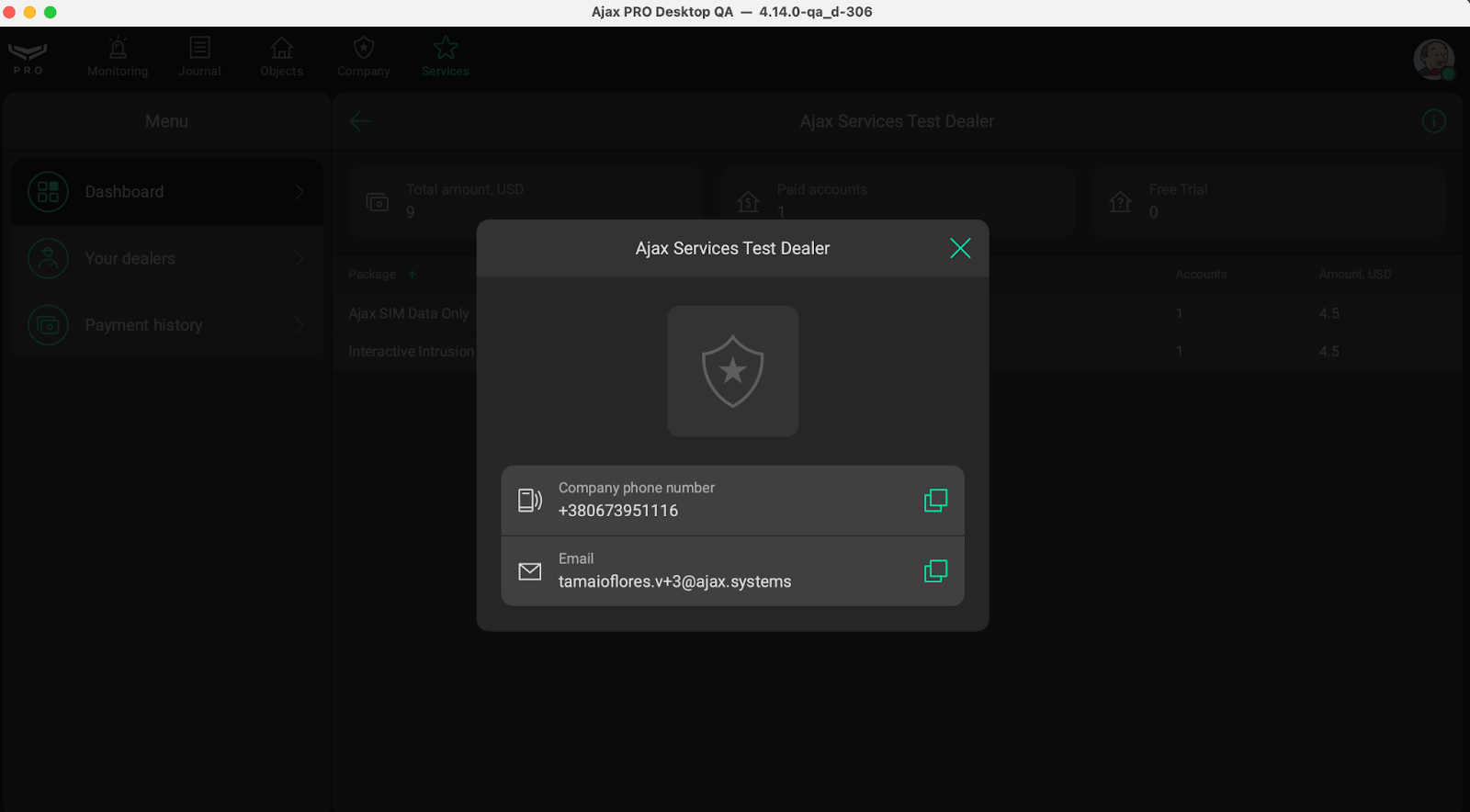 Once the request is approved, the Dealer company can start activating Ajax Services.