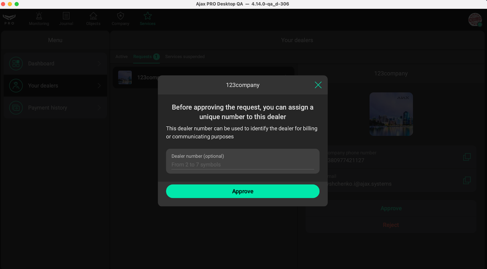 - Assign a number to the Dealer if necessary. Confirm by clicking Approve again.