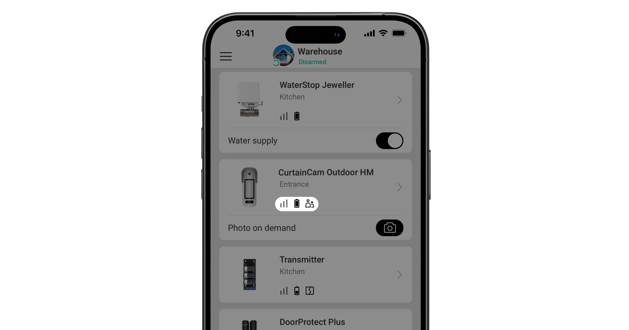 If monitoring software supports photo verification, photos by scenario are available to the monitoring station engineers. Photos by scenario are also available in the Ajax PRO Desktop app.