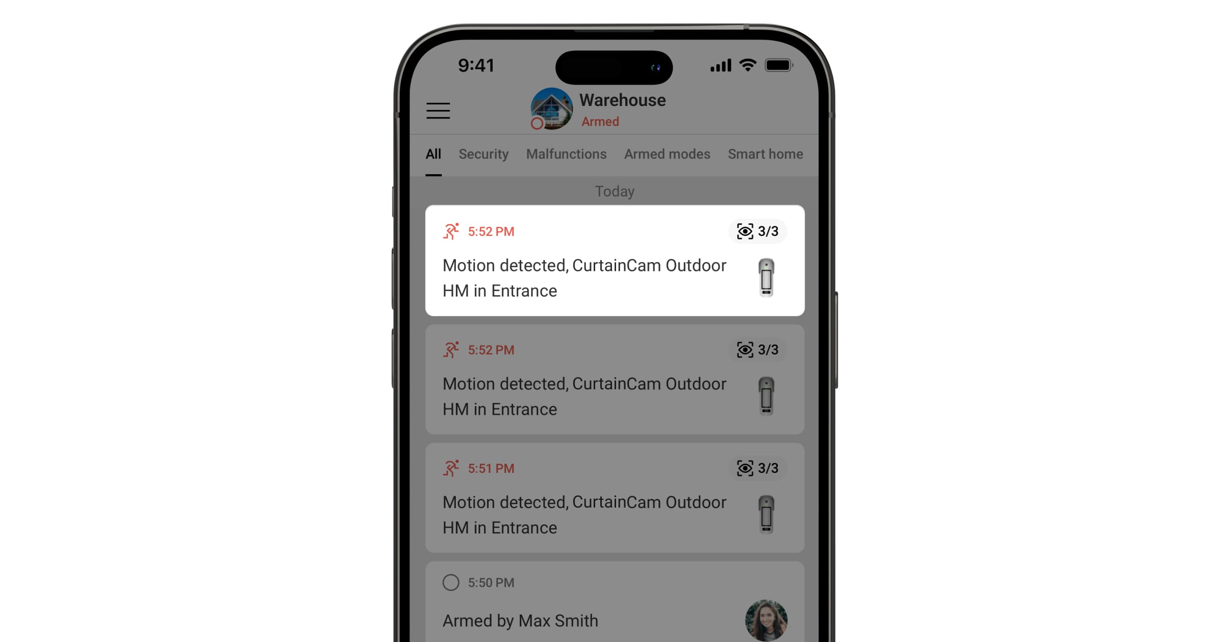 With photo verification, you can receive visual confirmation of alarms from Superior MotionCam G3 (PhOD) Jeweller and other Ajax devices.