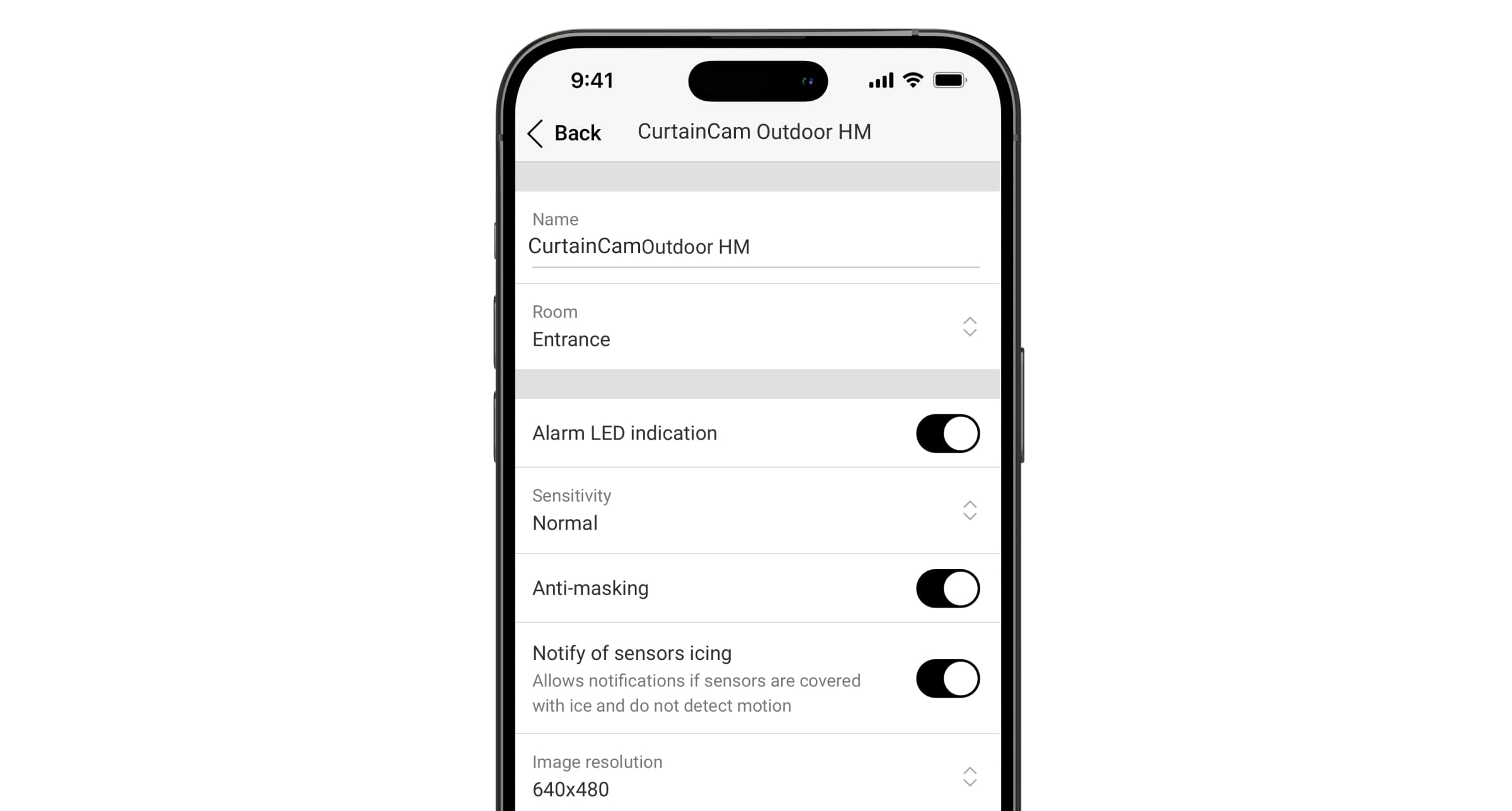 The detector takes photos by alarm only if the movement is detected and only when armed mode is on. By default, the Photo by alarm feature is enabled for all detectors. The number of images and their resolution can be changed in the device settings. Photos by alarm are available to all users with access to the event feed.