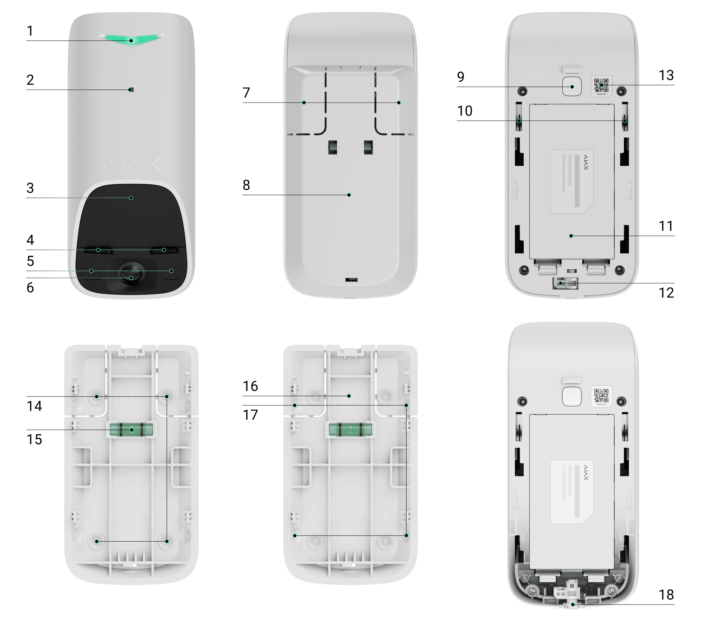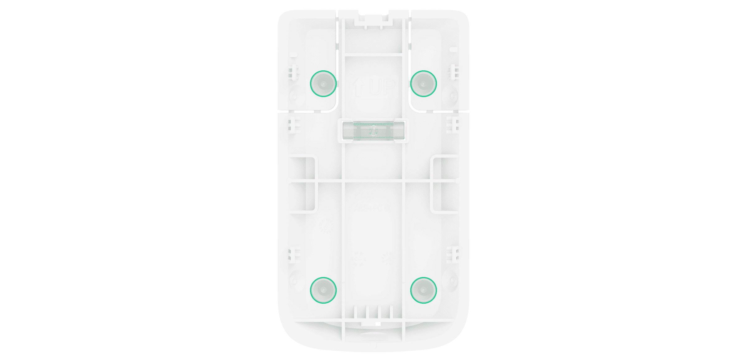 - Perforated parts of the mounting panel. They are necessary for a tamper button to be triggered in case of any attempt to detach the detector from the surface. Do not break them off.