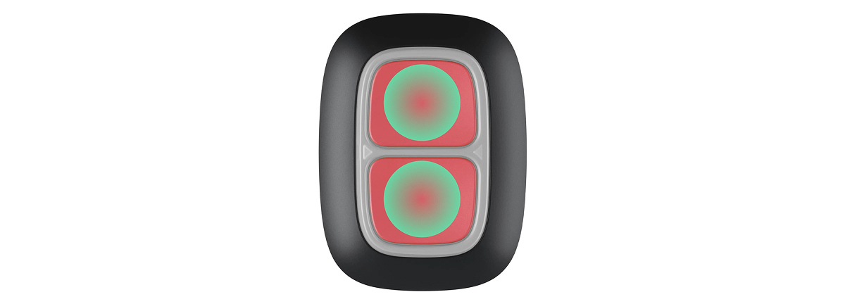 El Superior DoubleButton G3 Jeweller parpadea en rojo y verde para indicar la ejecución de comandos y los estados de carga de la batería.