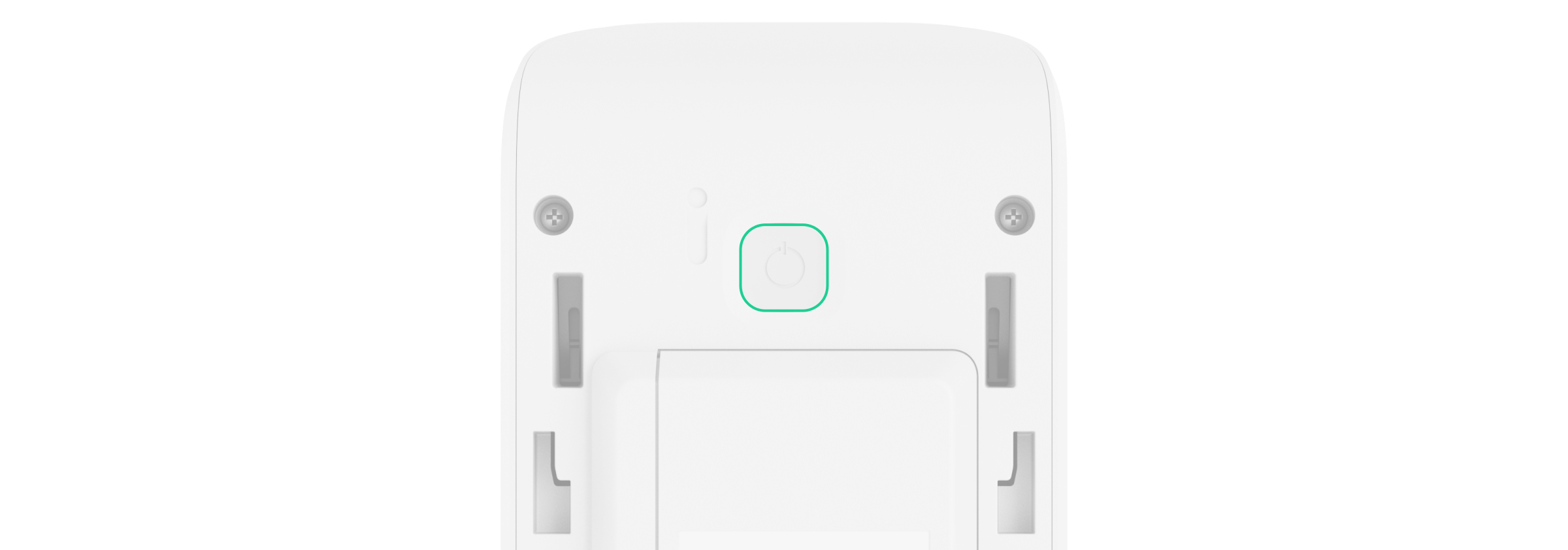 - Coloque el detector en el panel de montaje SmartBracket y bloquéelo. El cierre para el SmartBracket tiene un interruptor antisabotaje y es necesario para fijar de forma segura el detector y protegerlo de un desmontaje rápido. El interruptor antisabotaje reacciona si alguien intenta desbloquear el bloqueo para el SmartBracket, y la notificación al respecto se envía a las apps Ajax.