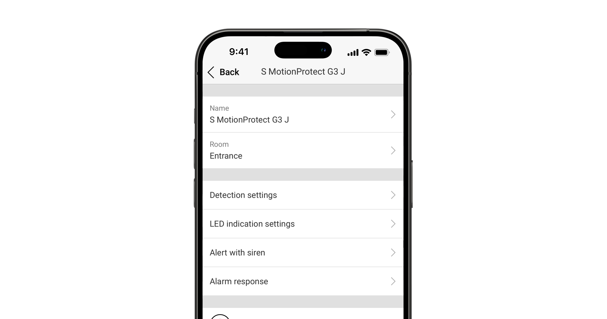 Los usuarios y la empresa de monitorización saben exactamente dónde se ha detectado el movimiento. Las notificaciones contienen el nombre del espacio (el nombre de la instalación protegida), el nombre del dispositivo y la estancia virtual a la que está asignado el dispositivo.