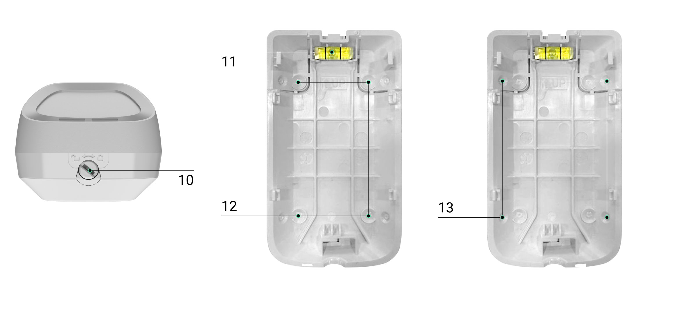 - Puntos para taladrar agujeros para montar el dispositivo en la esquina.