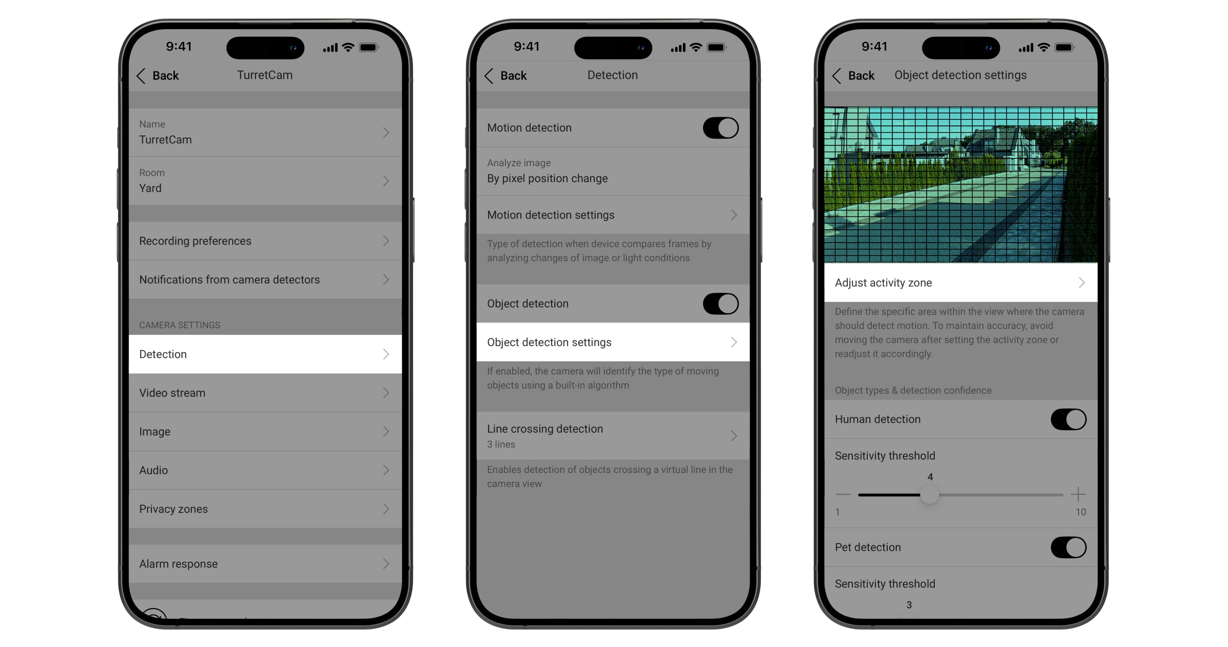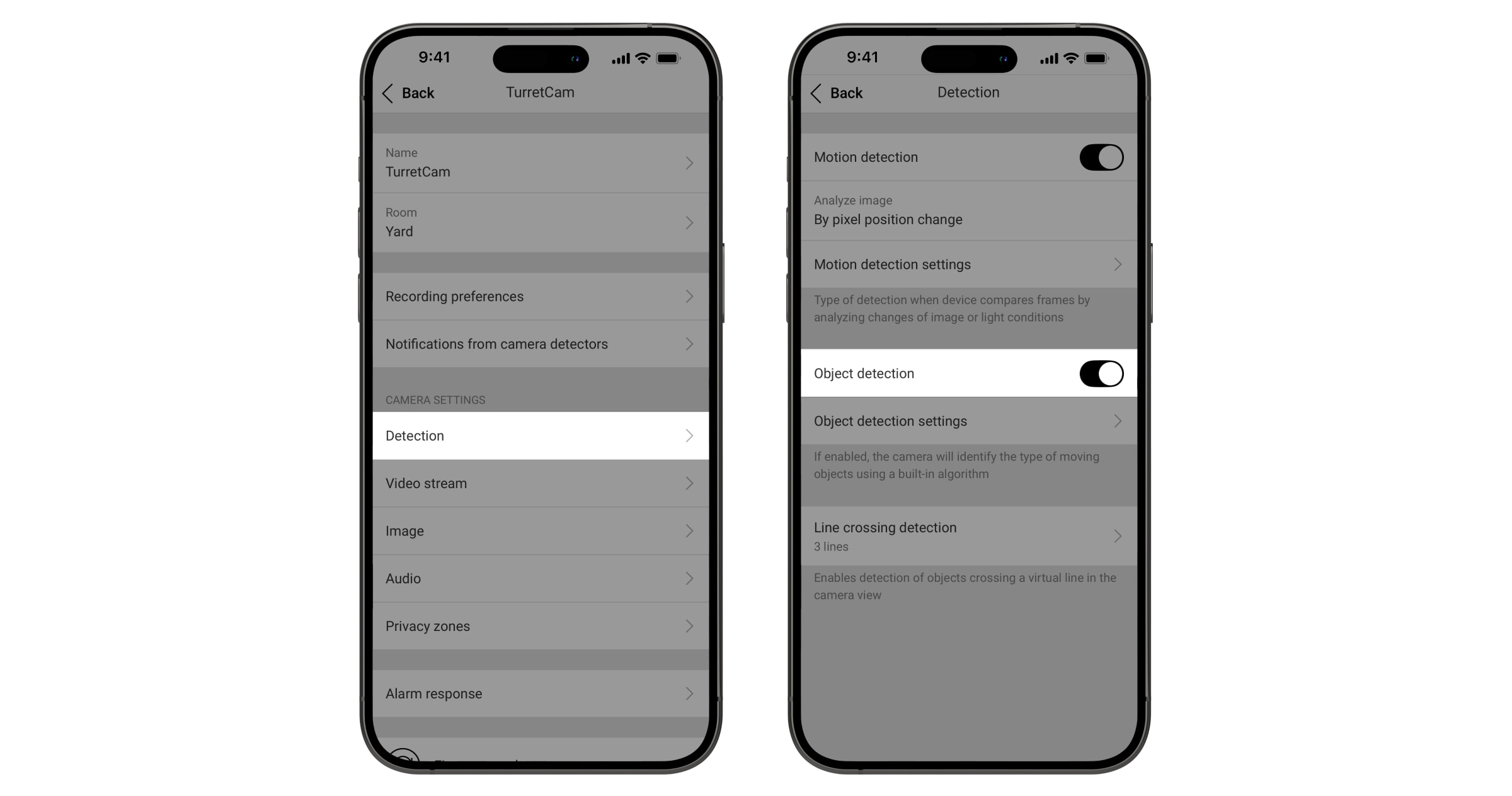 - Il rilevamento degli oggetti è configurato nelle impostazioni di rilevamento della telecamera:
