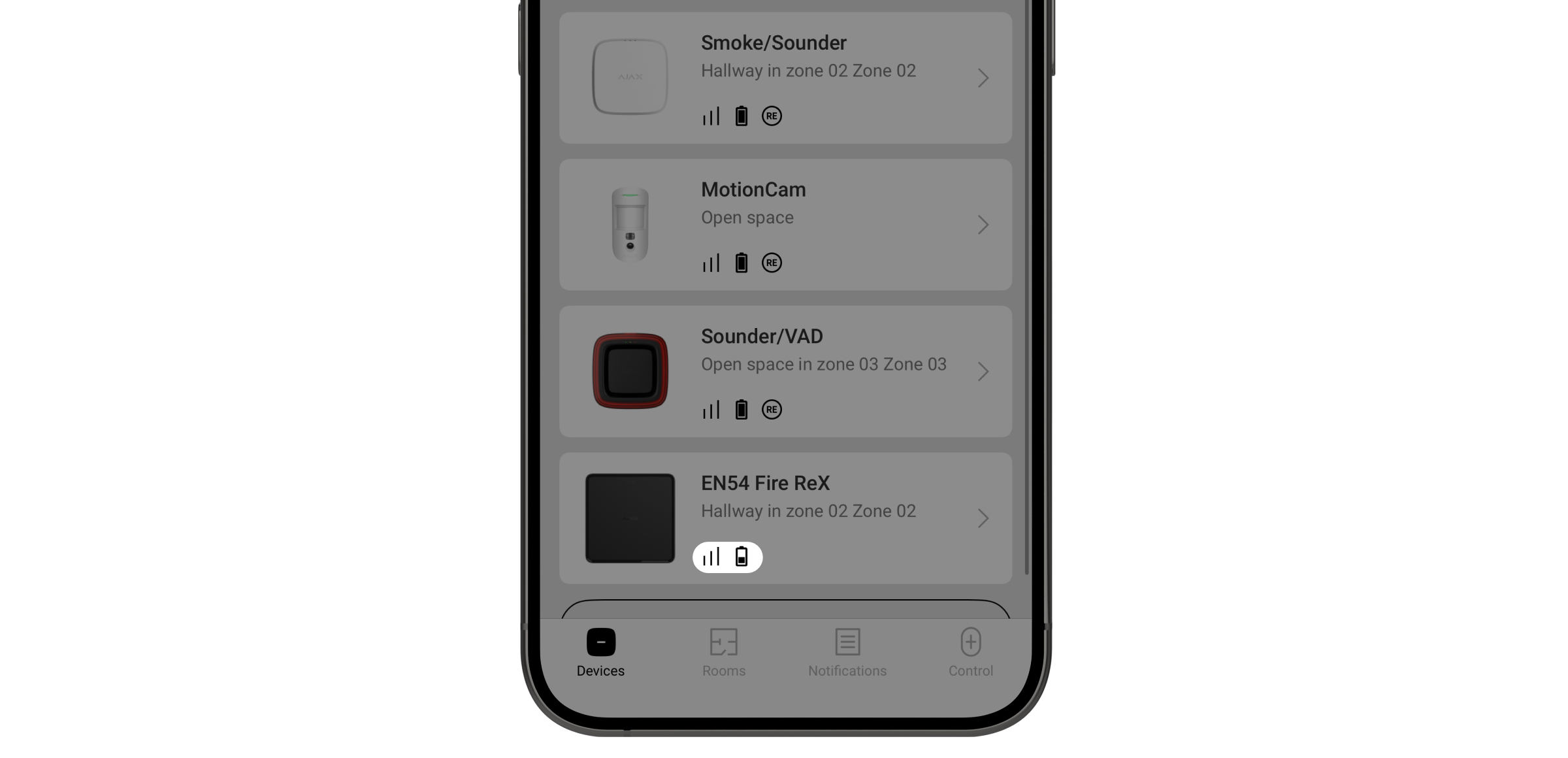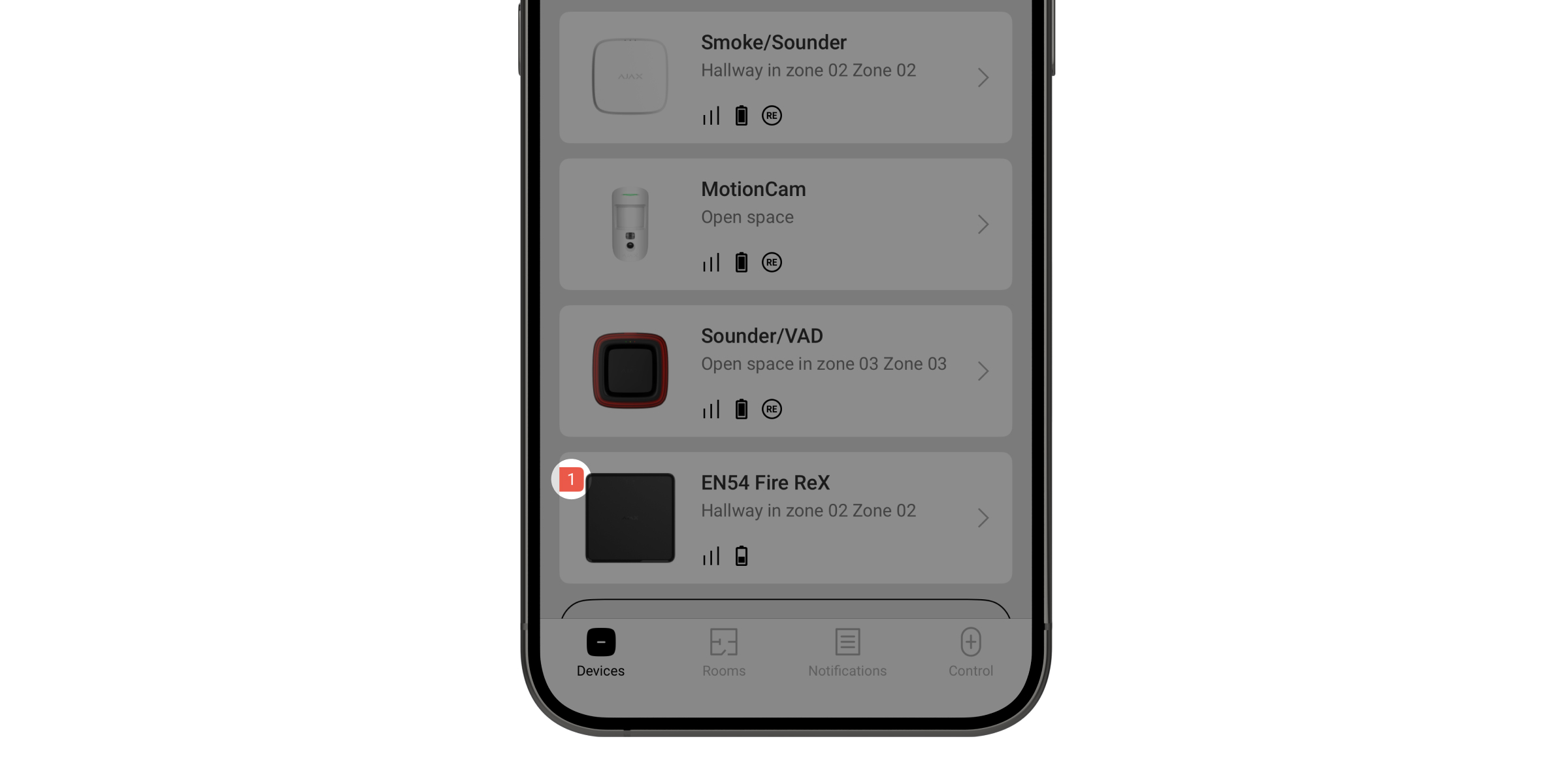 Il sistema ignorerà solo il dispositivo disattivato. I dispositivi collegati tramite EN54 Fire ReX Jeweller continueranno a funzionare normalmente. |
