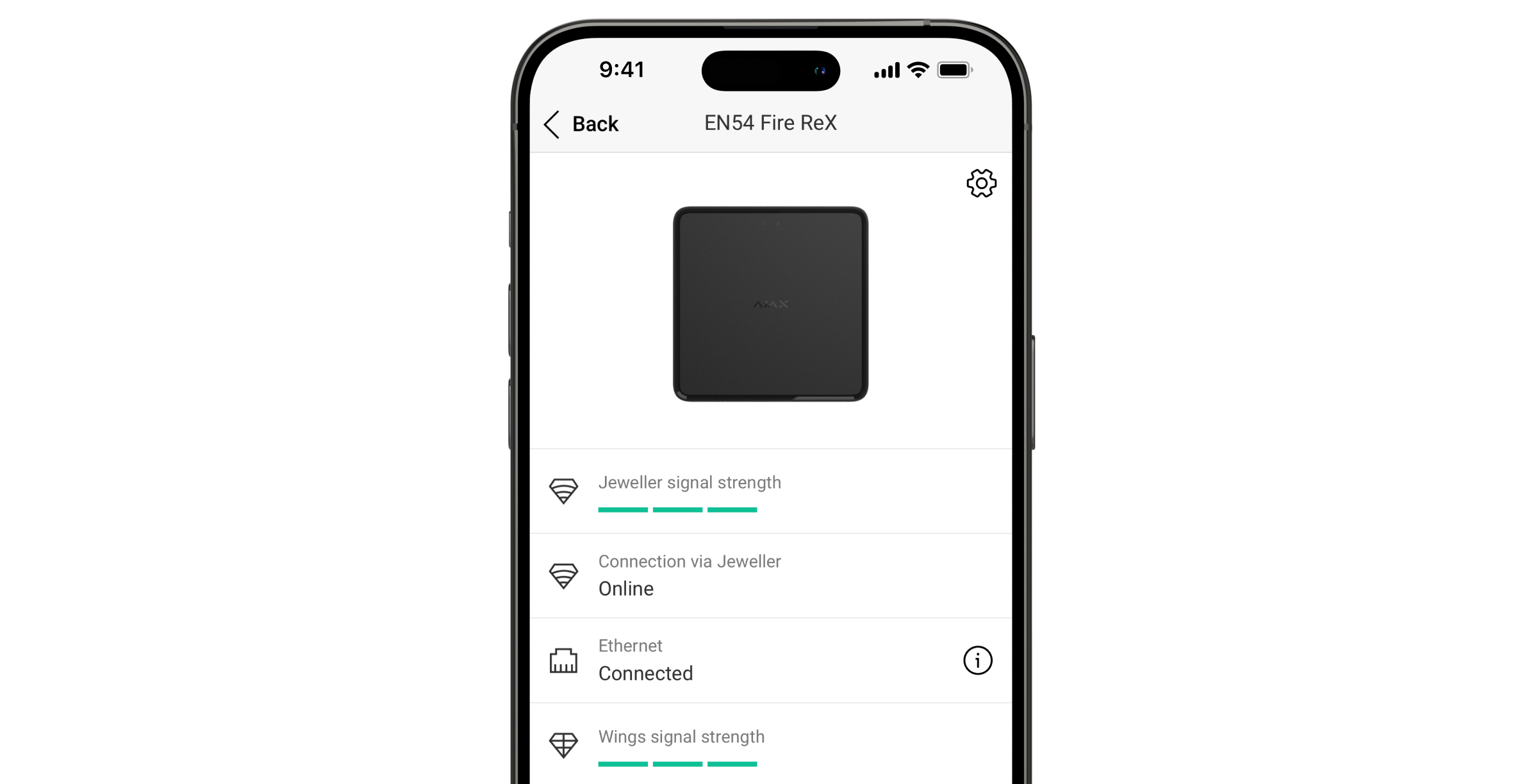 - Alimentare EN54 Fire ReX Jeweller e connetterlo a Internet.