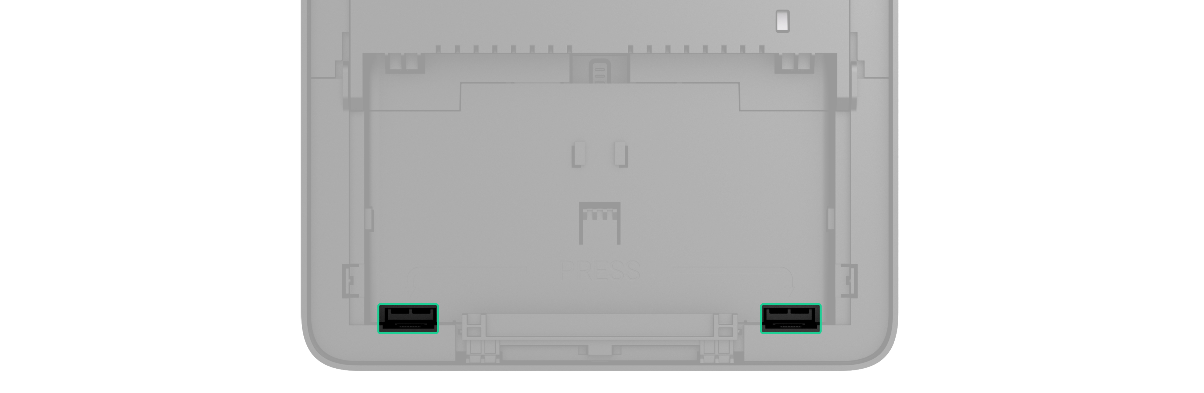 - Parte perforata del pannello di montaggio che attiva il tamper antisabotaggio se il dispositivo viene rimosso dalla superficie. Fare attenzione a non romperla.