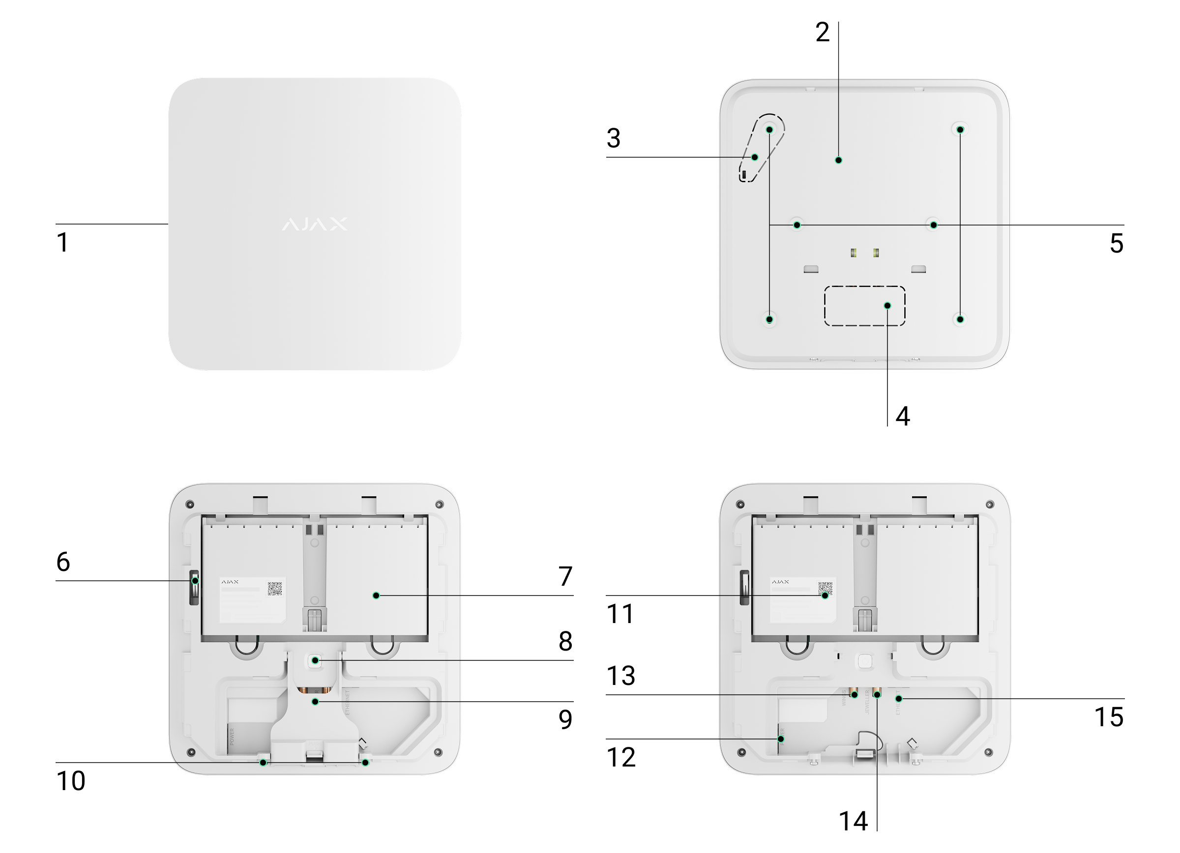 - Connettore per l’antenna esterna per canale di comunicazione Jeweller (connettore SMA femmina).