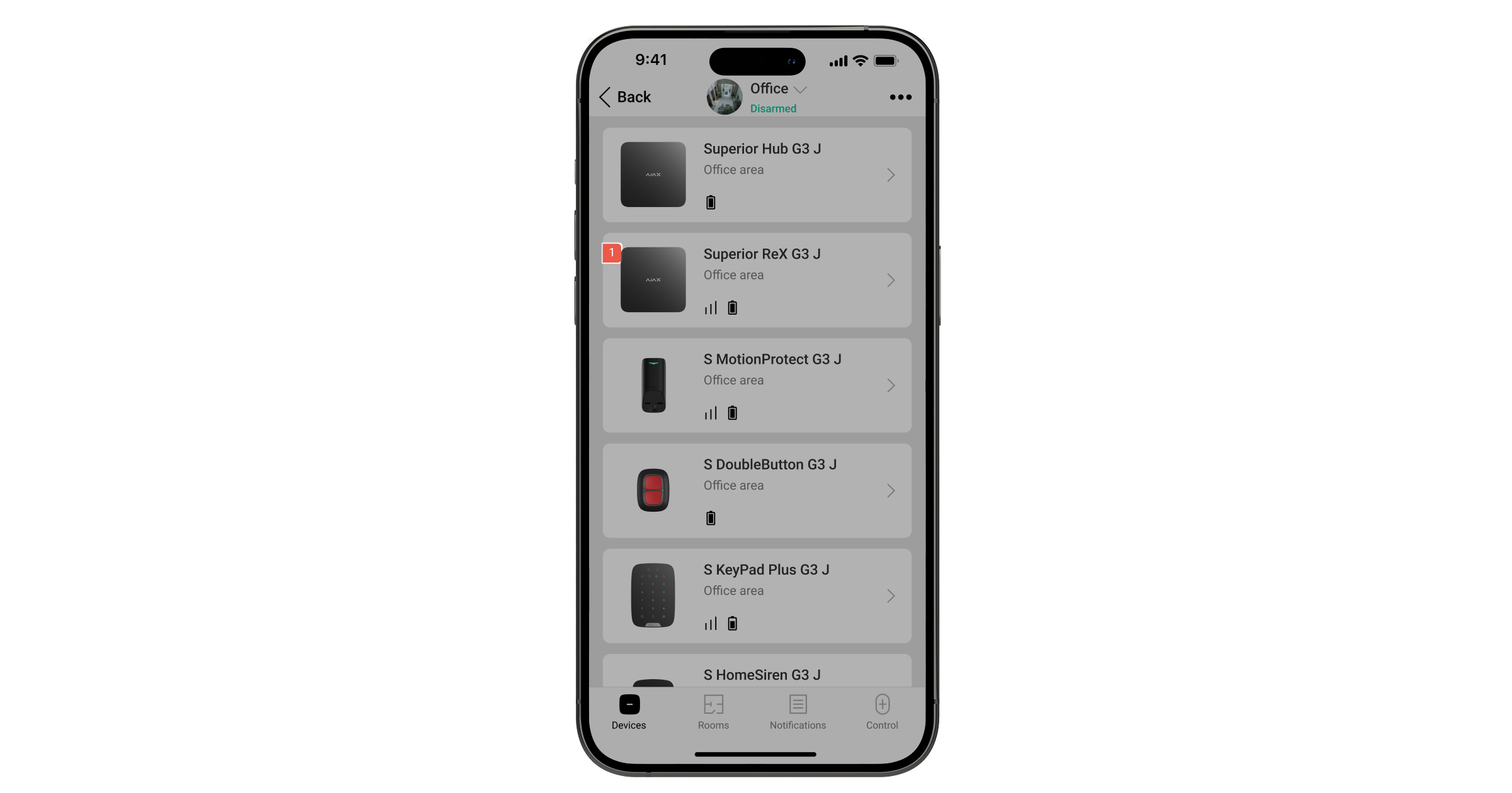 Una volta connessi, i dispositivi selezionati sono visualizzati con l’icona nell’app Ajax. Il dispositivo può connettersi a un solo Superior ReX G3 Jeweller. Quando il dispositivo si connette a un nuovo ripetitore, si disconnette automaticamente da quello precedente.