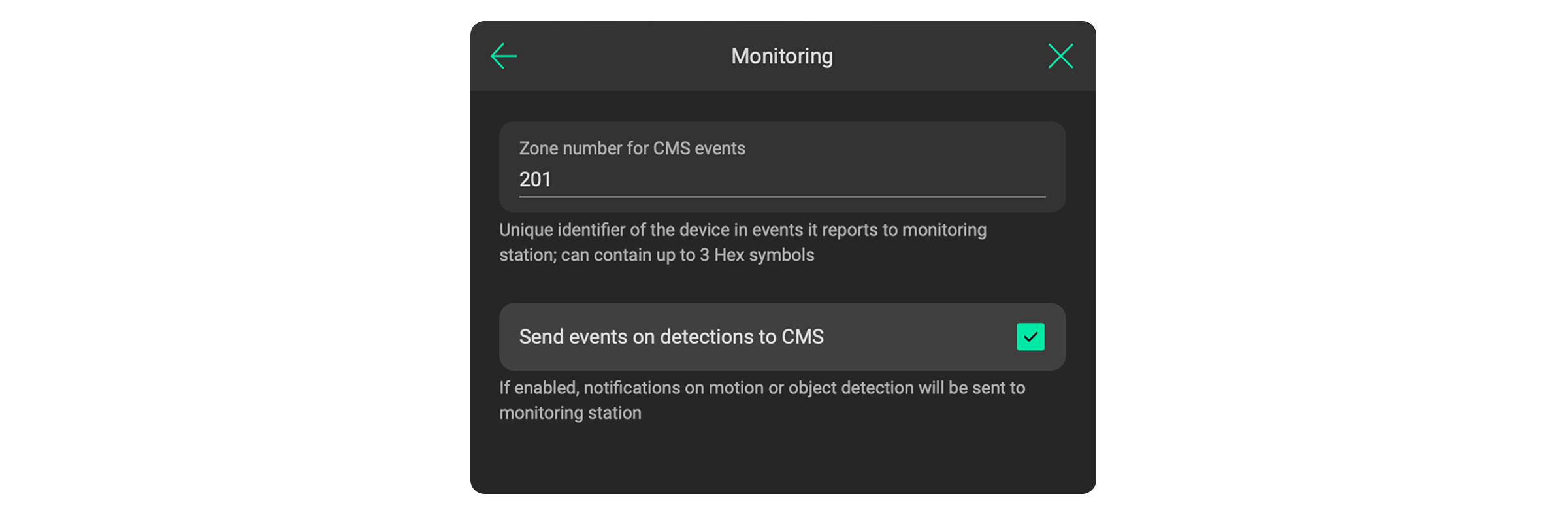 - Schakel de optie Stuur detectie naar de meldkamer in.