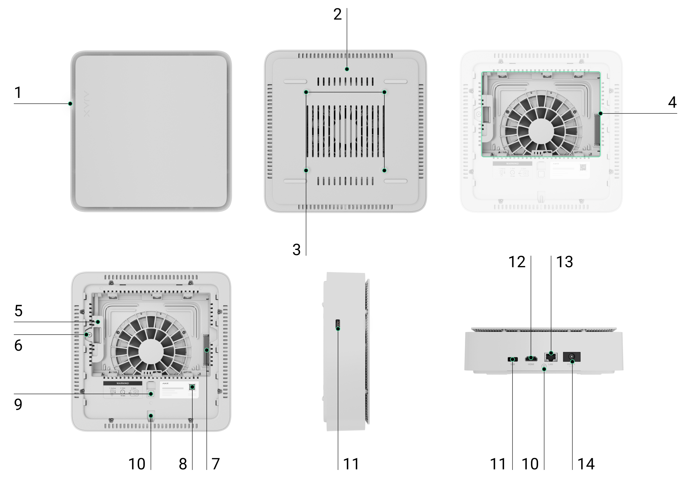 - QR-code met de apparaat-ID. Wordt gebruikt om NVR H toe te voegen aan een Ajax-systeem.