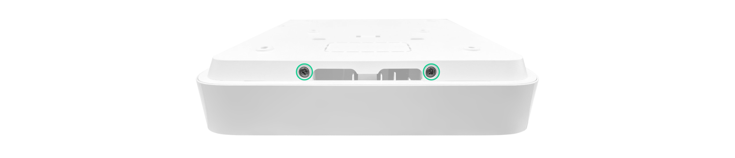 - Geperforeerd deel van de behuizing. Het is noodzakelijk om de sabotagebeveiliging te activeren bij elke poging om het apparaat van het oppervlak los te maken. Breek het niet af.
