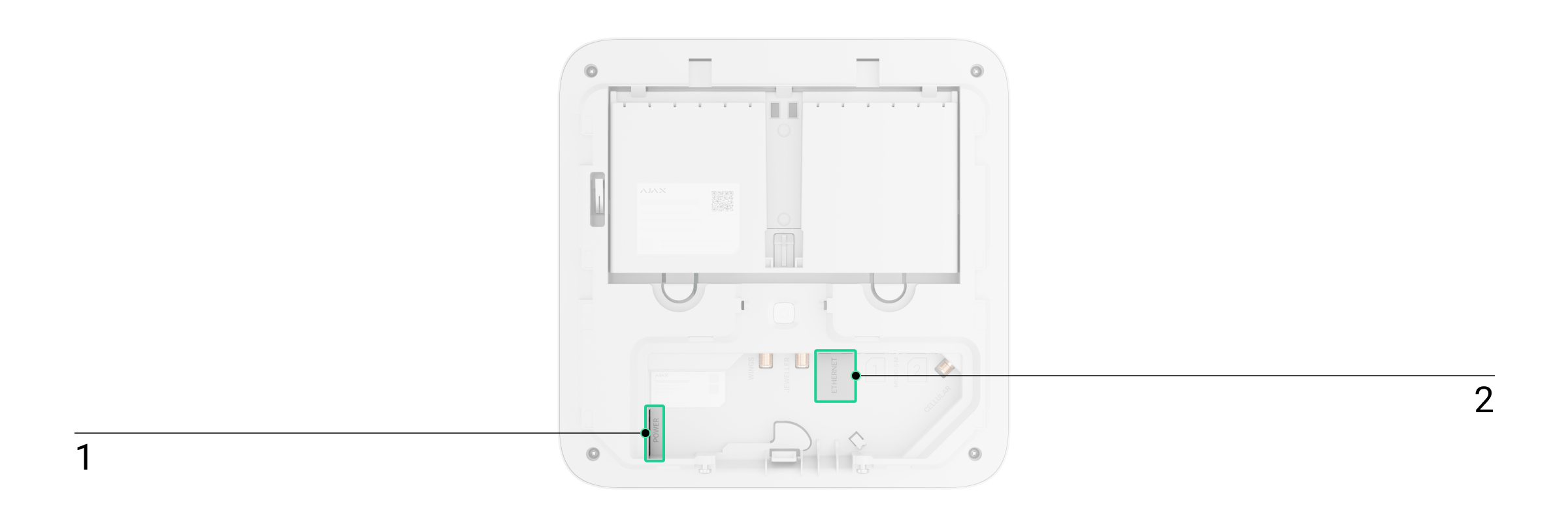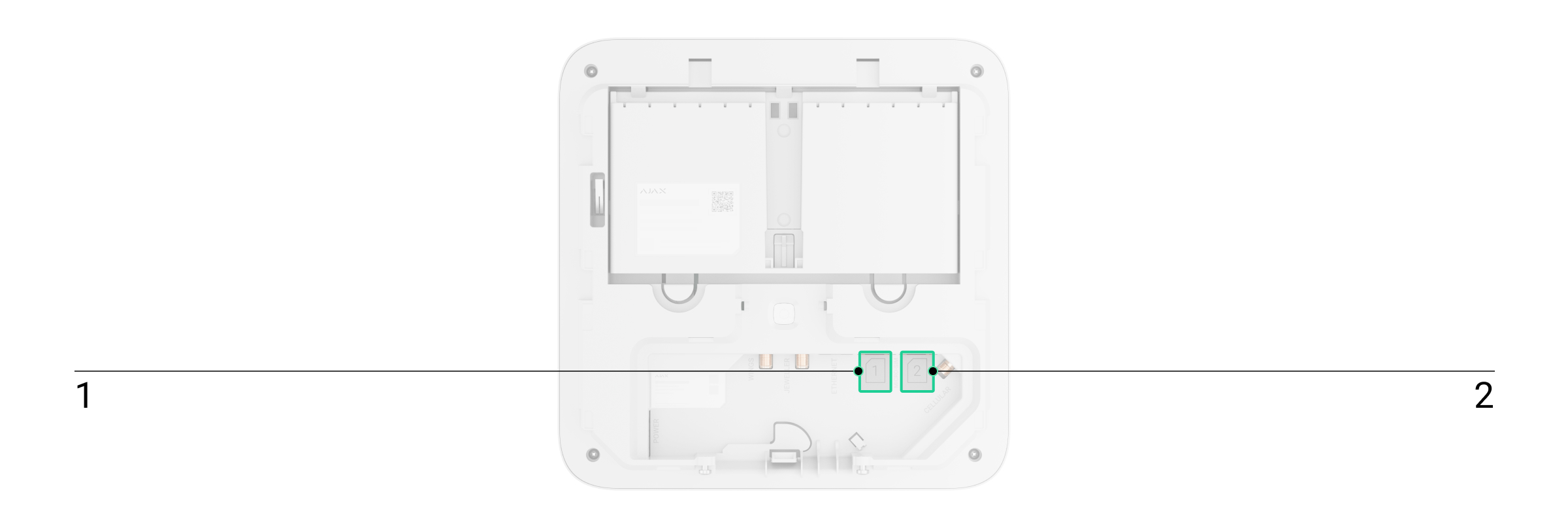 Superior Hub G3 Jeweller is verbonden met internet via het ethernet-communicatiekanaal en een mobiel netwerk. Om de betrouwbaarheid en beschikbaarheid van het systeem te vergroten, kunt u beide sleuven voor simkaarten gebruiken.