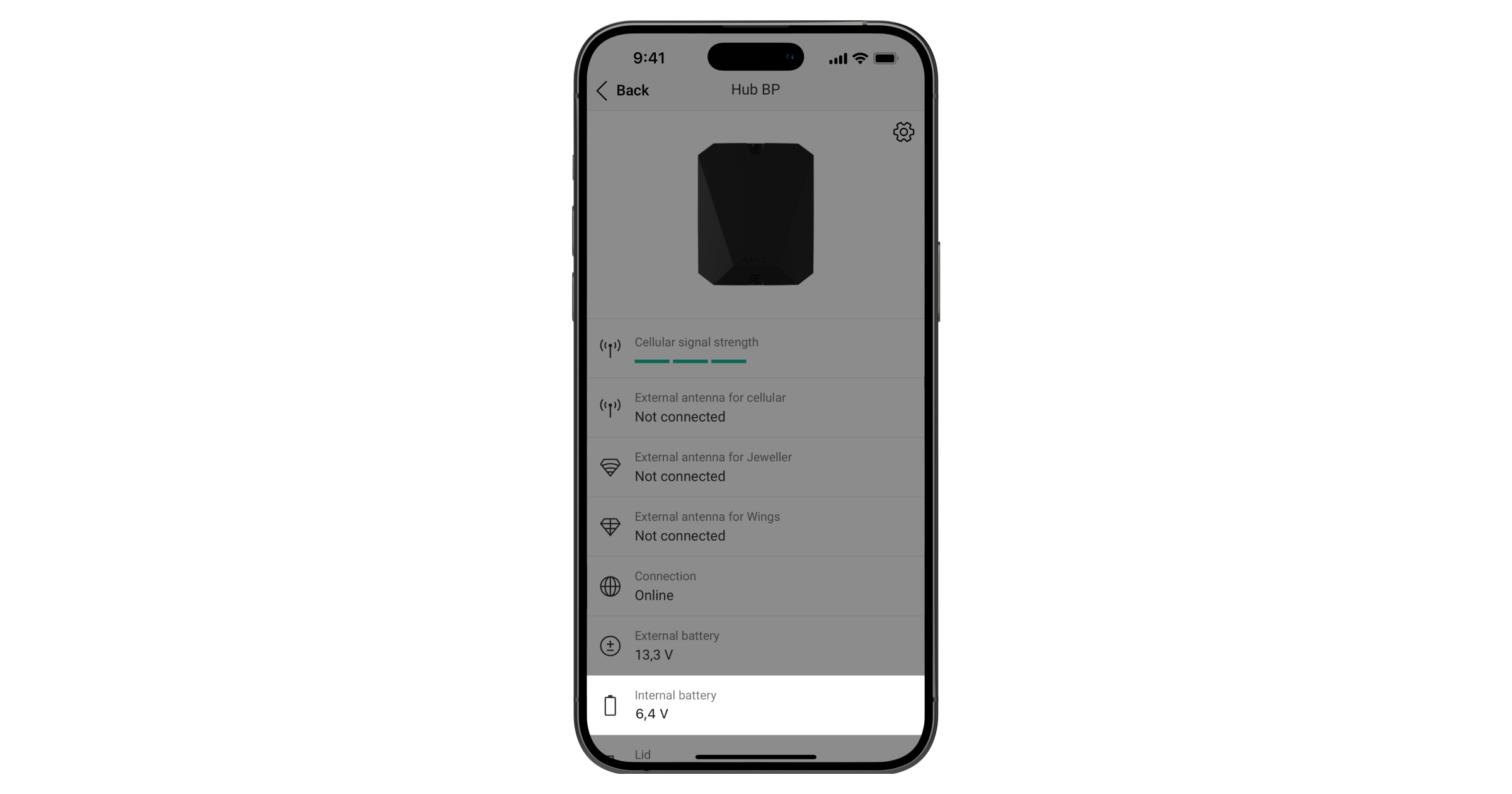 - Sprawdź stan połączenia baterii w aplikacji Ajax.