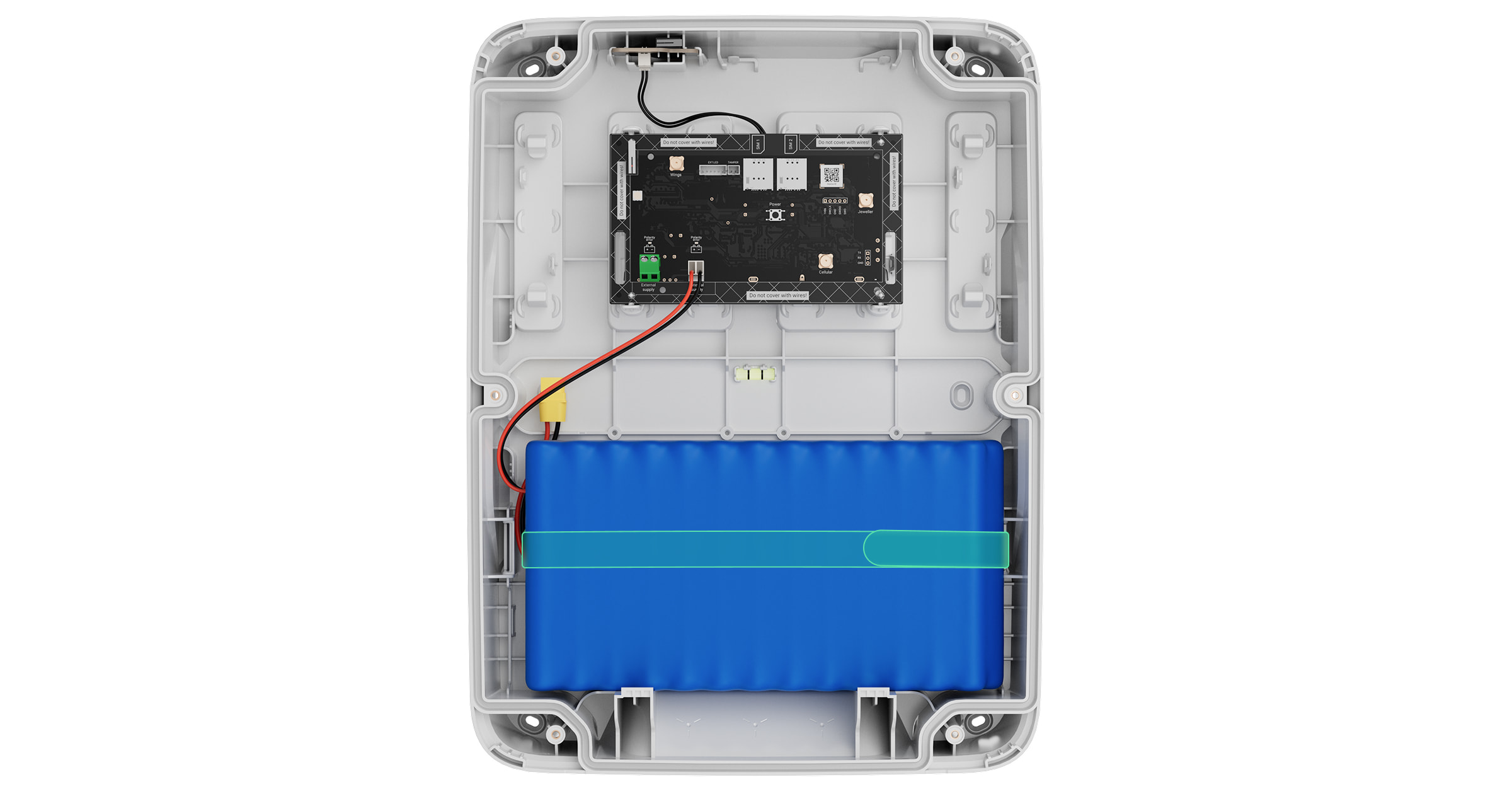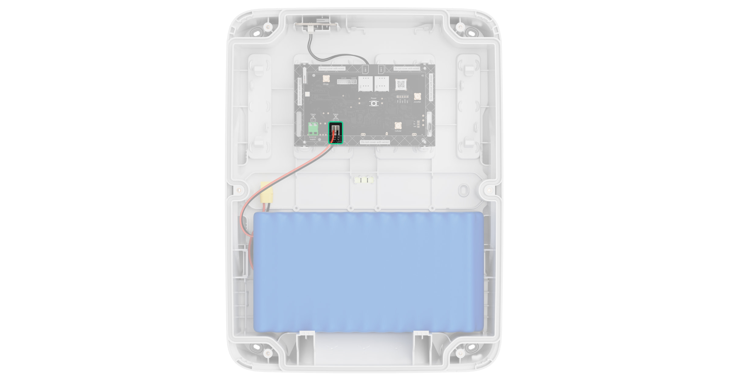 - Zainstaluj baterię w kompatybilnej obudowie Ajax Case.