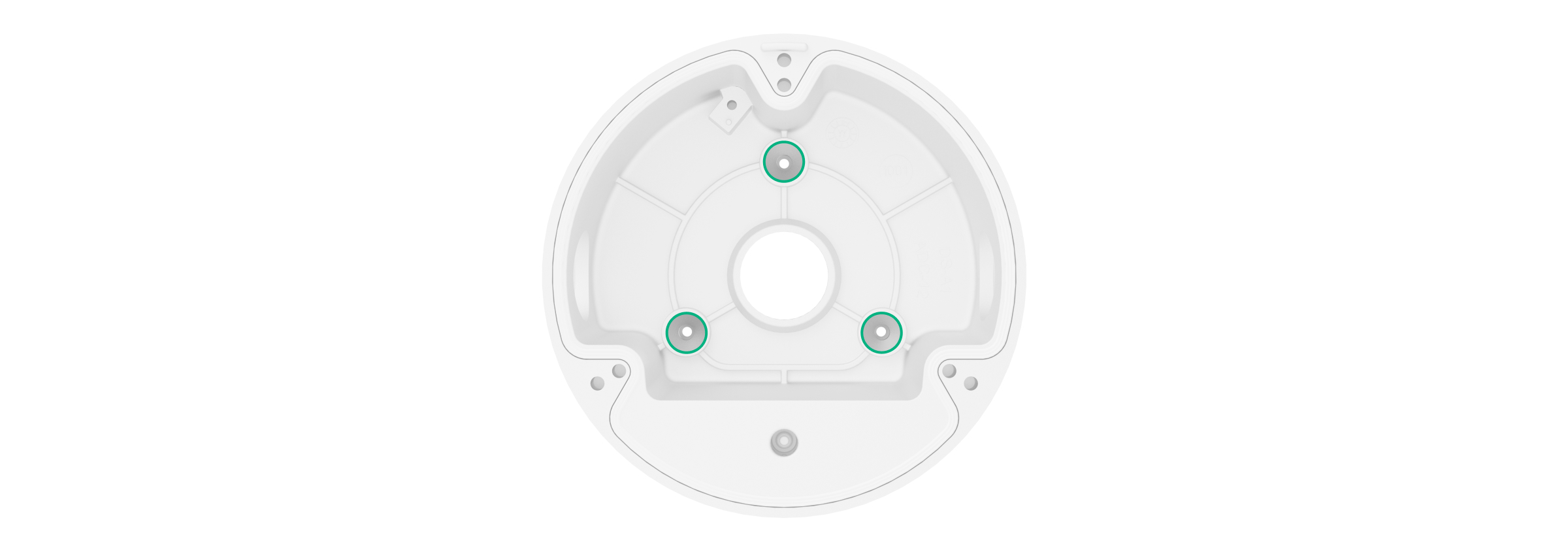 - Otwory służące do przymocowania puszki przyłączeniowej kamery do powierzchni.