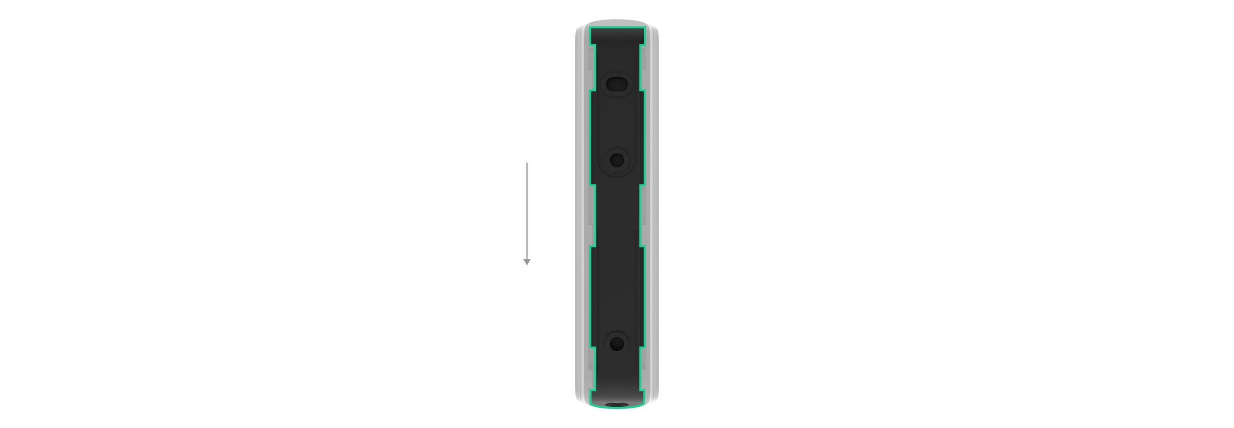 - Styk antysabotażowy. Uruchamia się w przypadku próby odłączenia czujnika od powierzchni lub zdjęcia go z uchwytu montażowego.