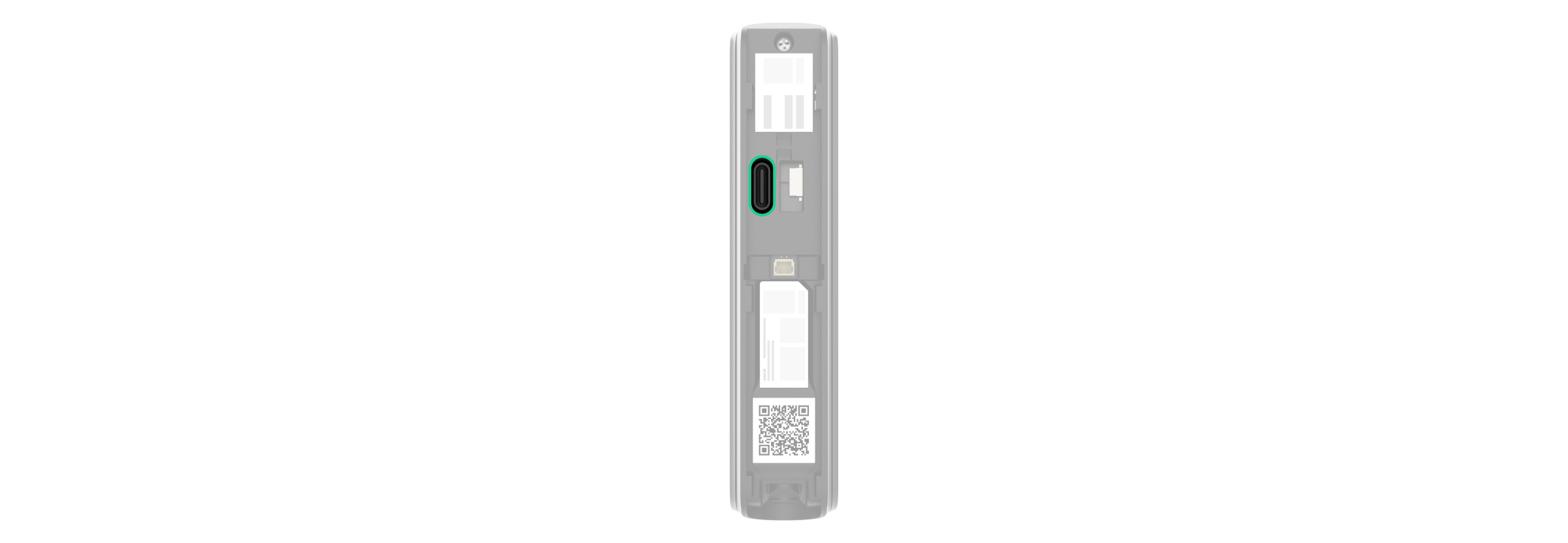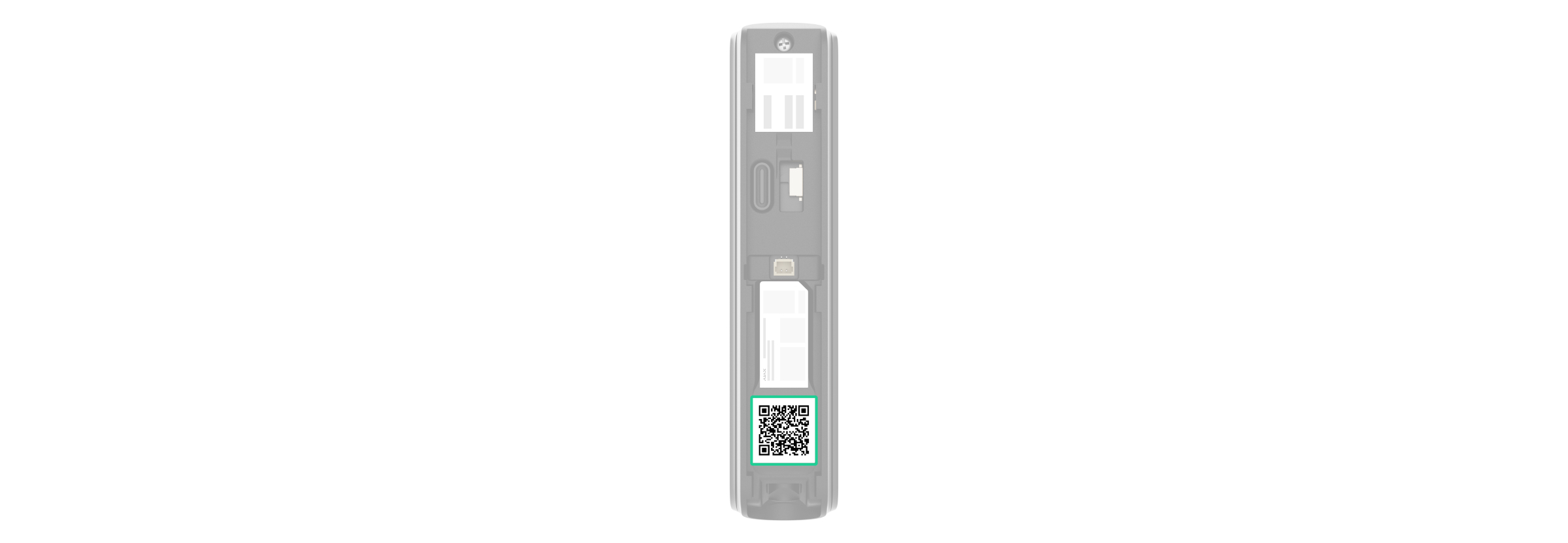 - Kod QR z identyfikatorem urządzenia. Umożliwia dodanie czujnika do systemu Ajax.