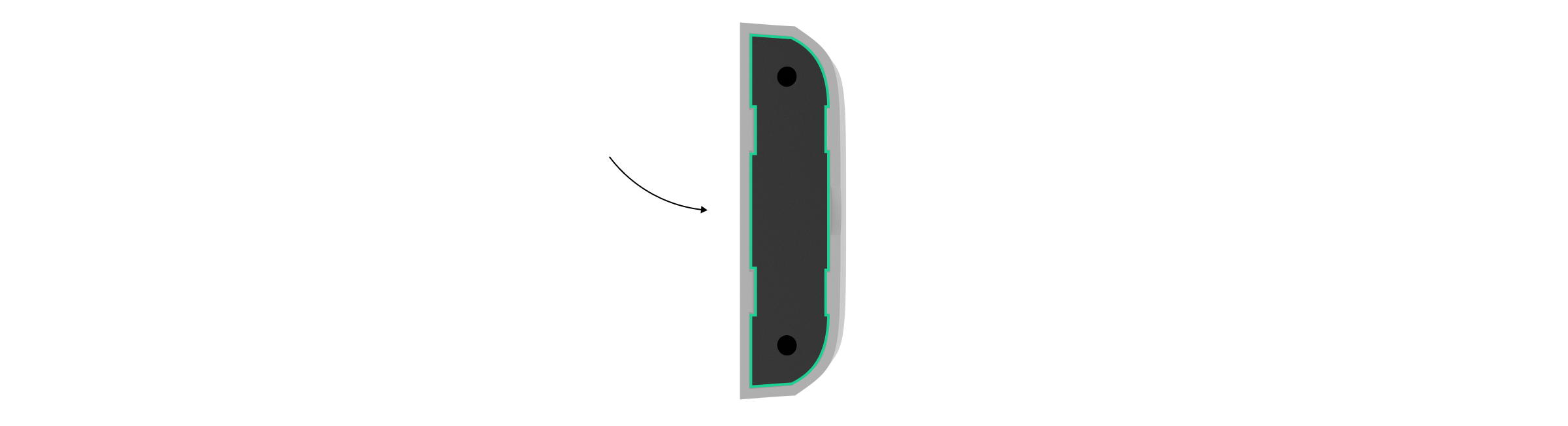 - Perforowana część uchwytu montażowego. Nie należy jej odłamywać. Niezbędna do wyzwolenia styku antysabotażowego w przypadku próby oderwania czujnika od podłoża.