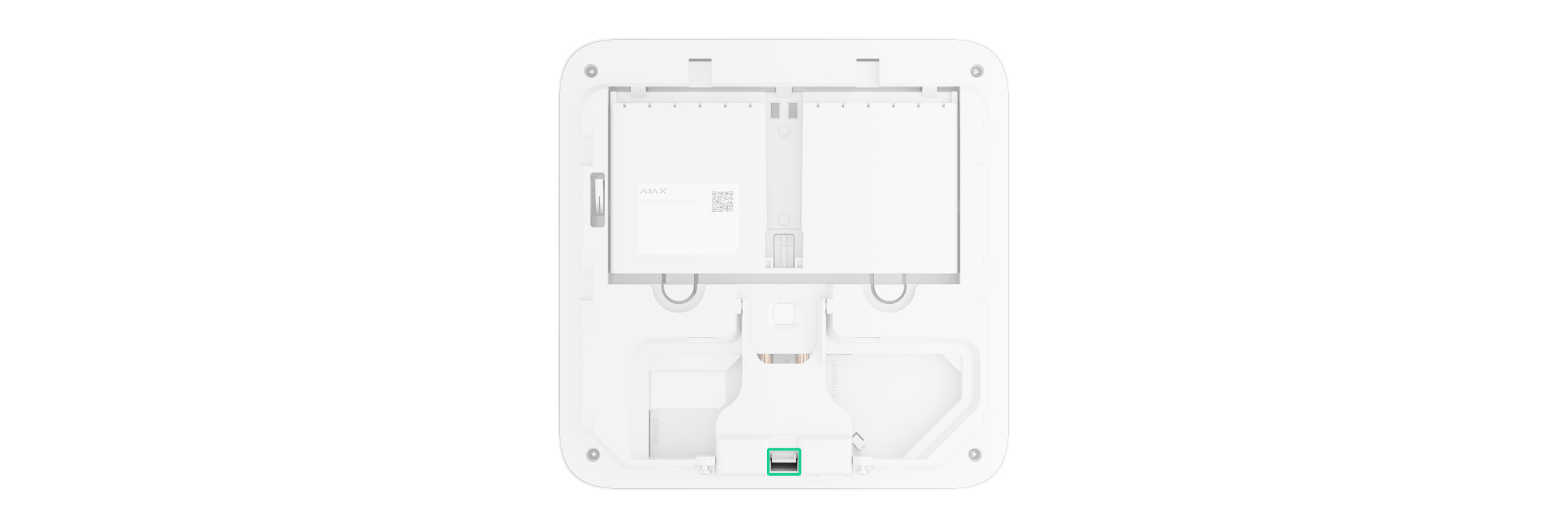 | Lights up white. | Connection to the hub is established via at least one channel: Jeweller and/or Wings. | If the external power supply is off, the indicator will flash every 10 seconds. |