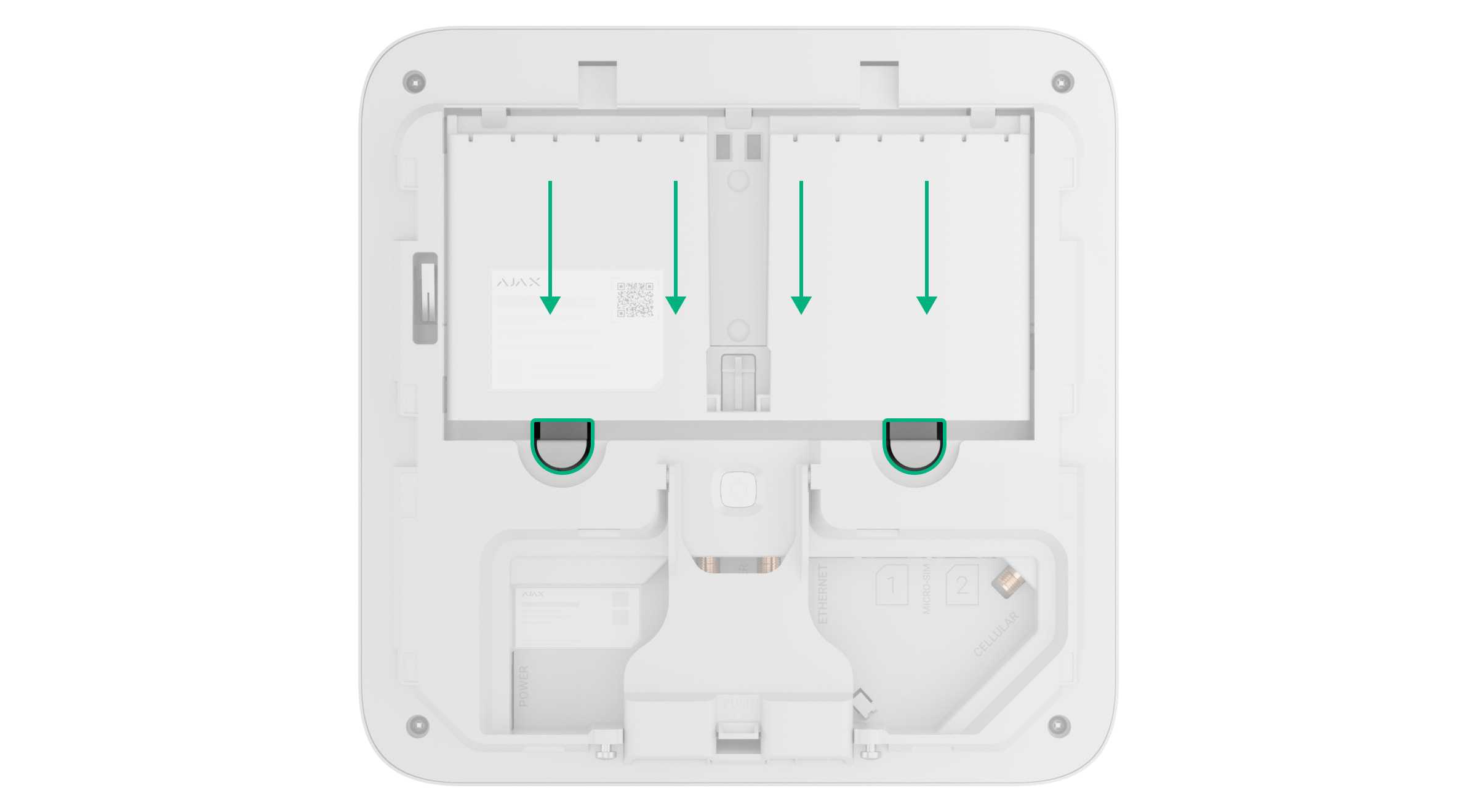 Superior Hub G3 Jeweller ve Superior ReX G3 Jeweller benzer bir muhafazaya sahiptir, bu nedenle pil kurulum süreci her iki cihaz için de aynıdır.