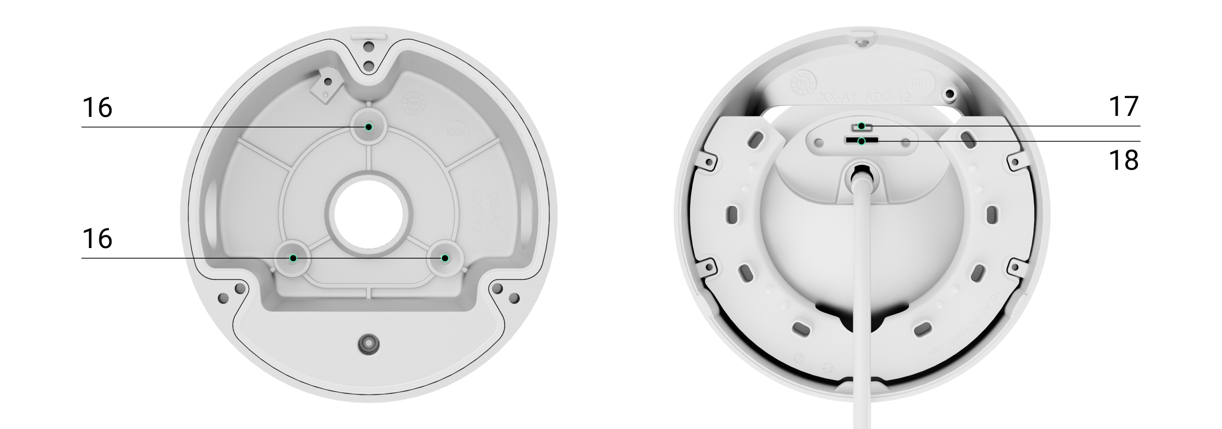 - Kamera muhafazasını tutucuya sabitlemek için vida. Birlikte verilen alyan anahtar (Ø 2,5 mm) ile sökülebilir.