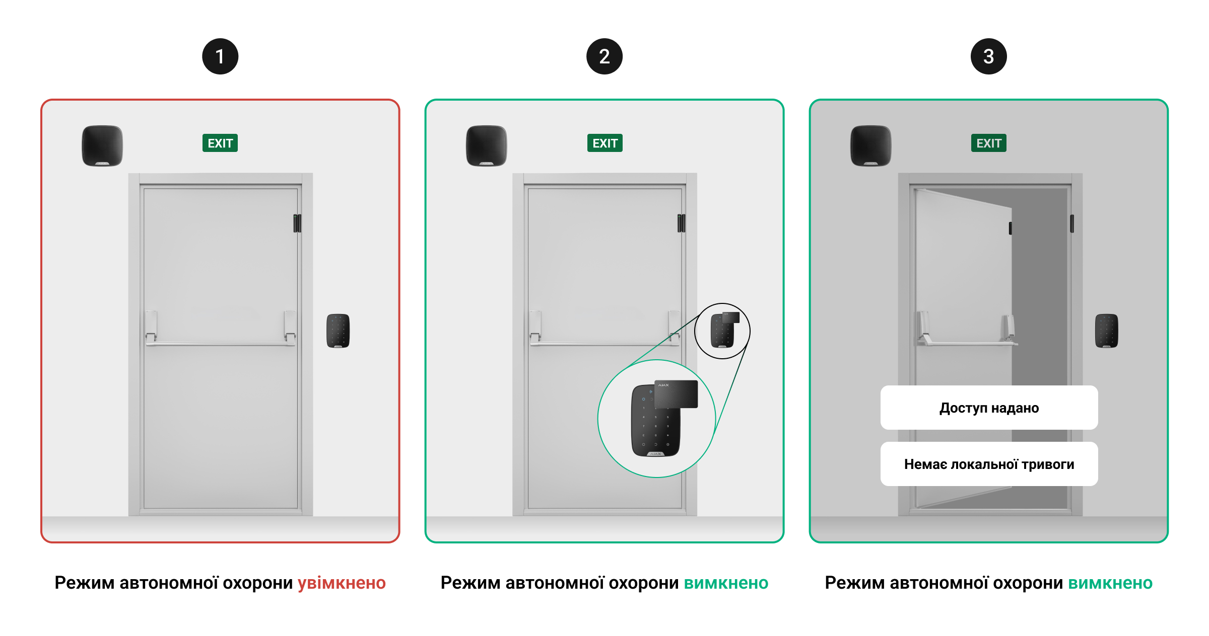 Автономна охорона — це спеціальний режим охорони, який дає змогу контролювати певні зони обʼєкта та керувати доступом до них, коли систему знято з охорони.