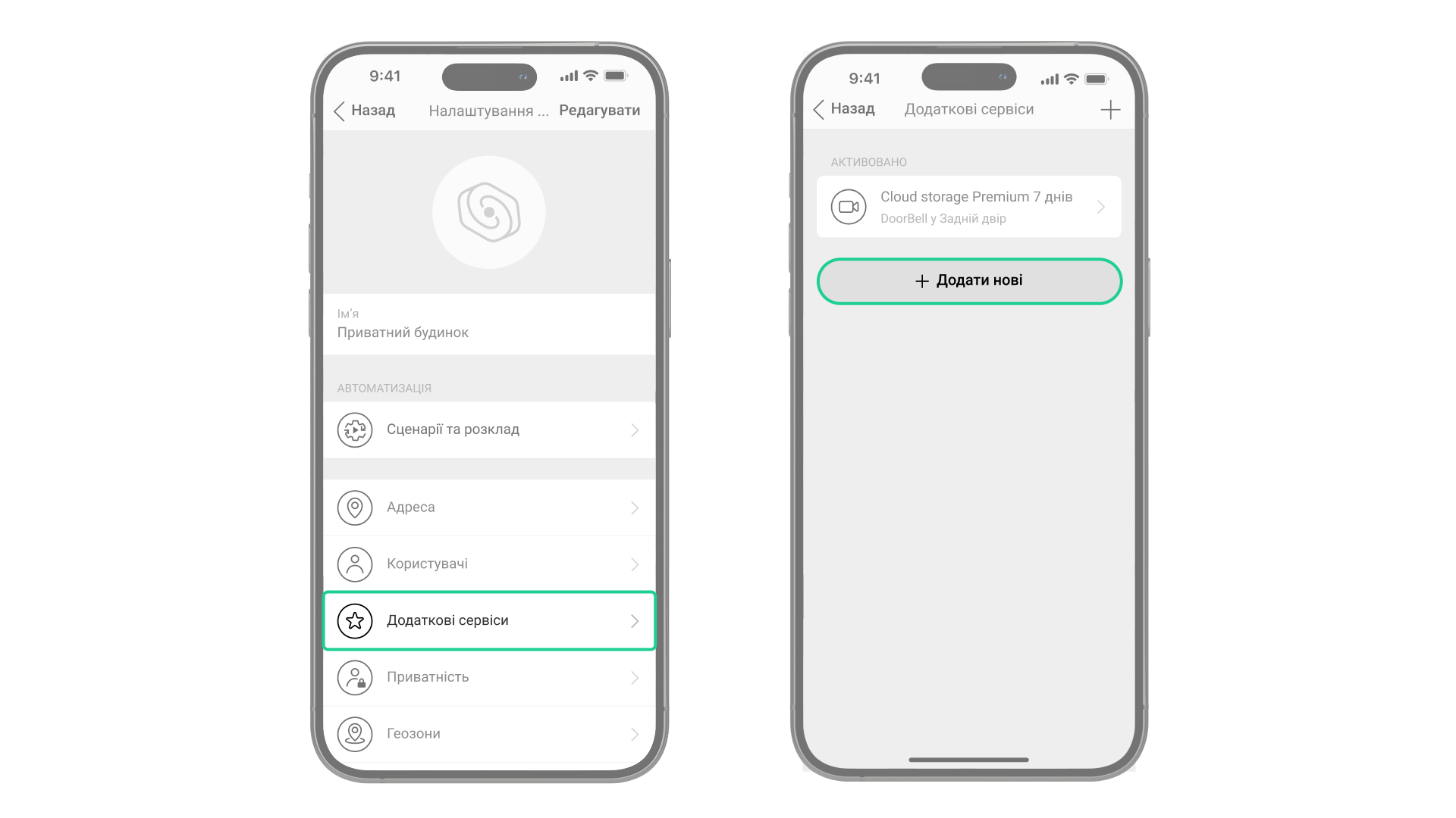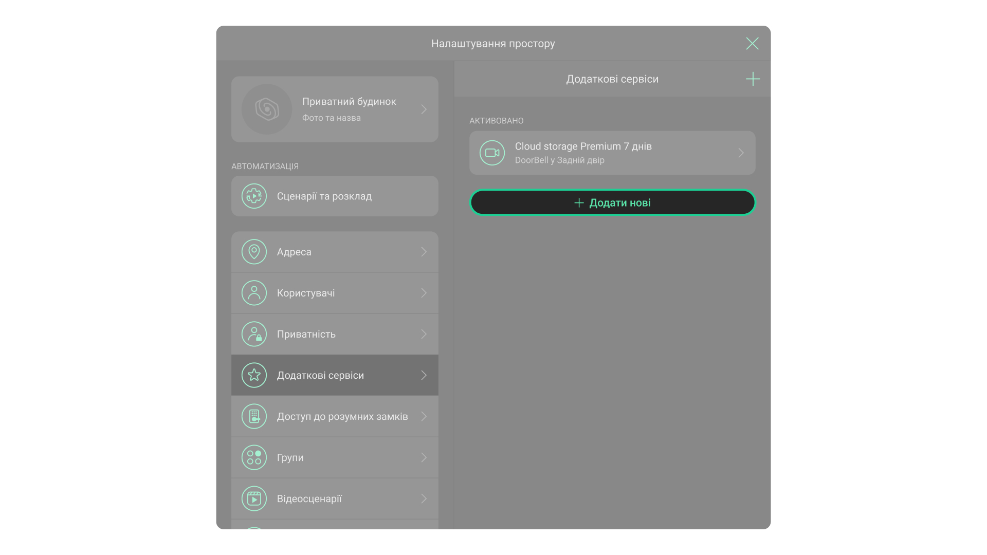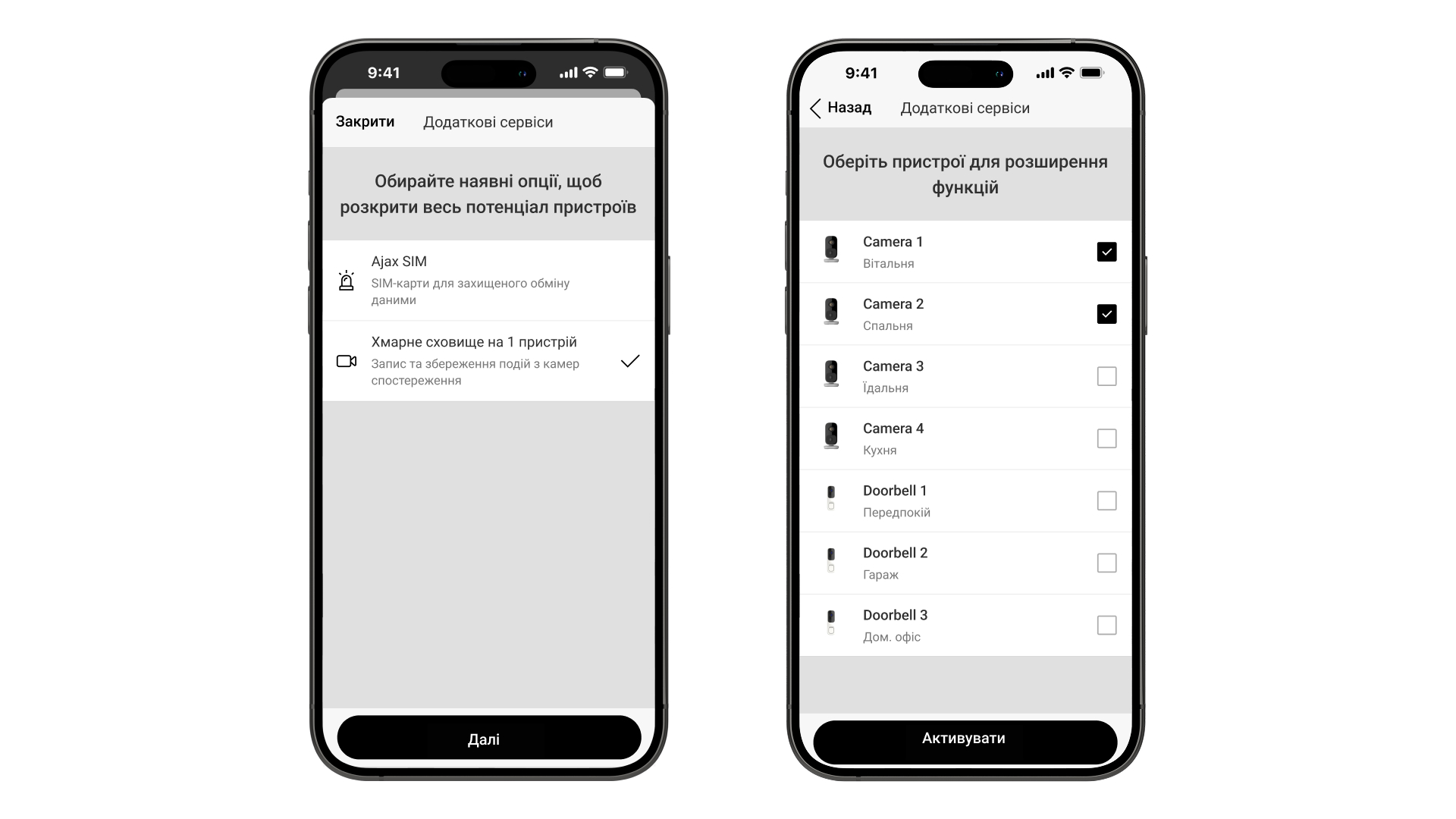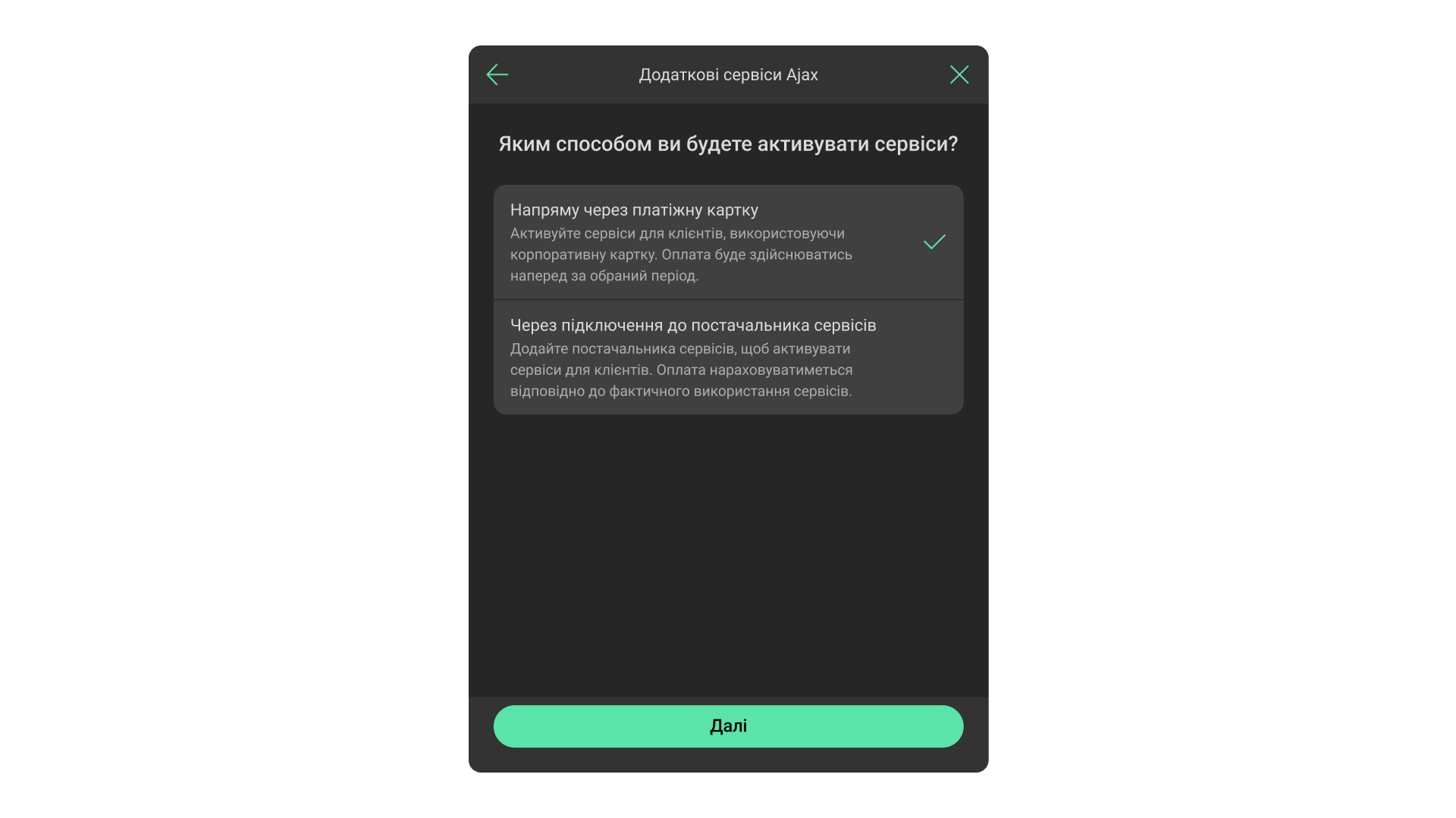 Інженер монтажу або менеджер сервісів Ajax може активувати сервіси, якщо вони доступні для простору.