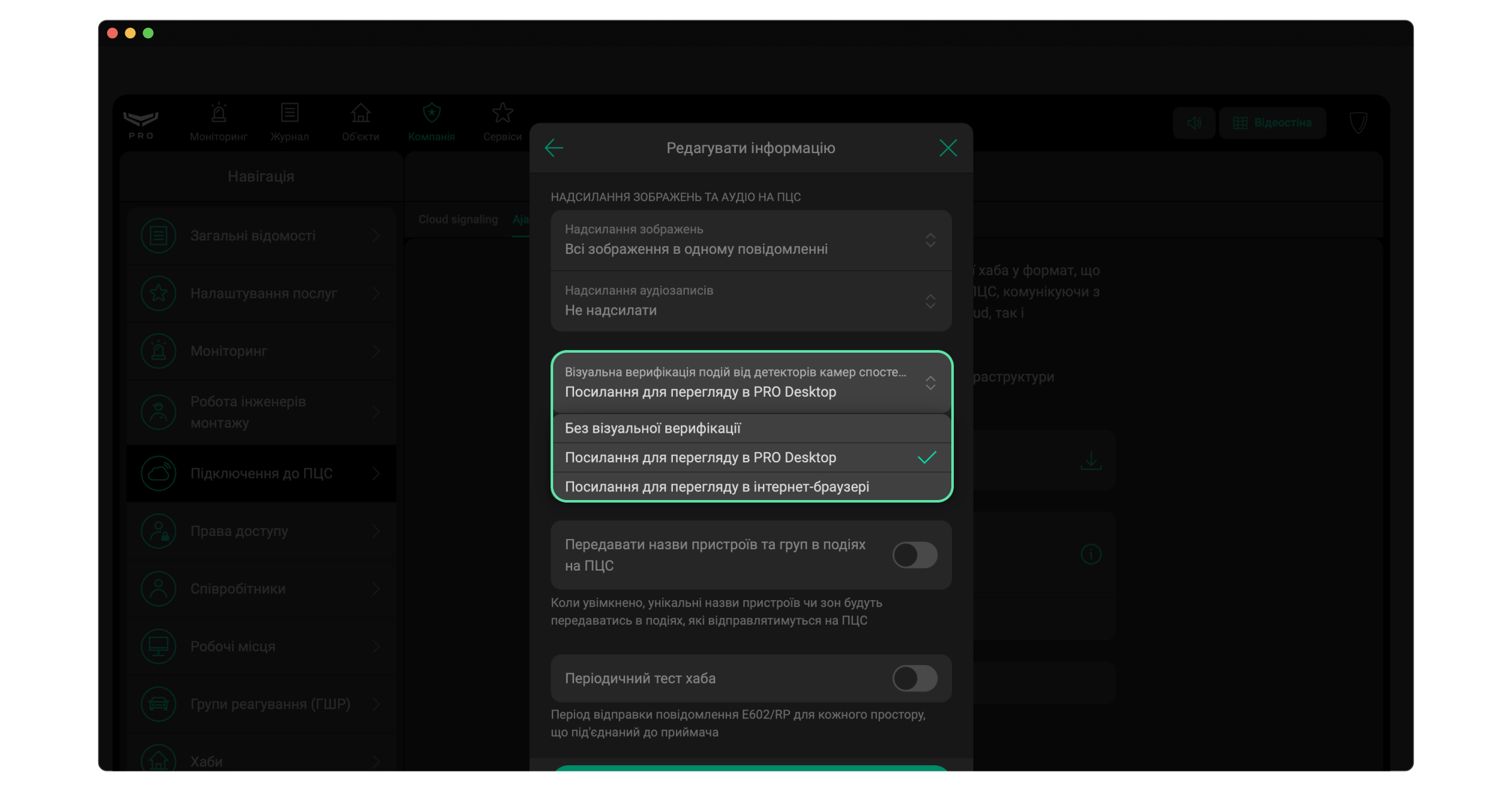 Це налаштування доступне для інженерів монтажу й керівників ПЦС у застосунку PRO-застосунках.