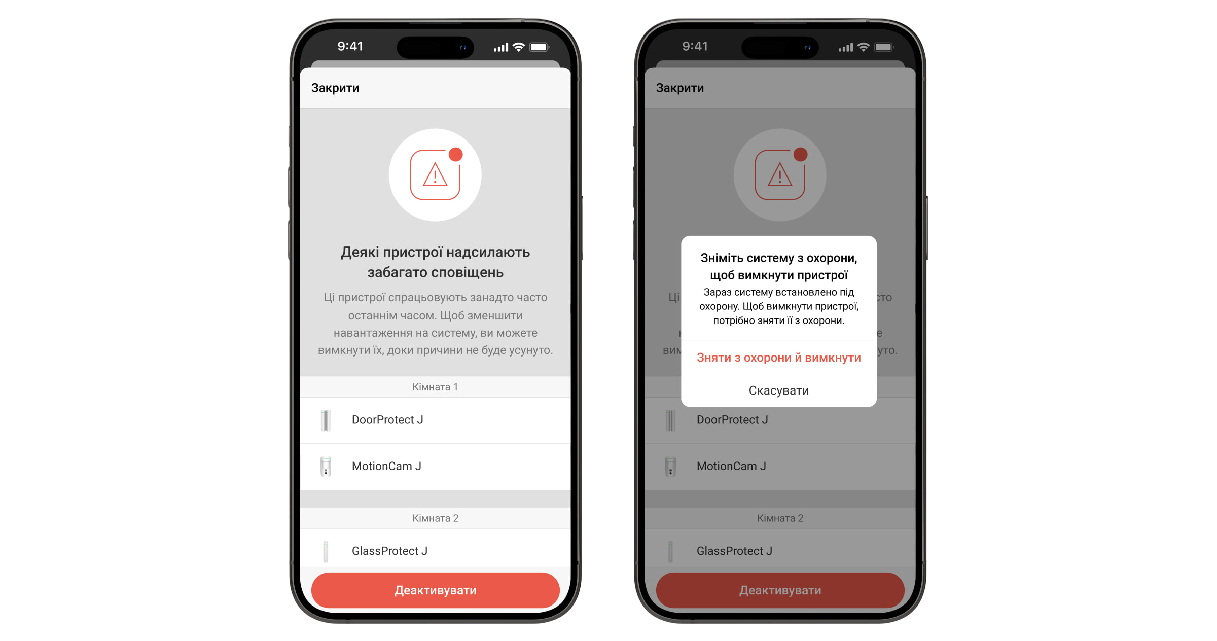 Застосунки Ajax сповіщають користувачів про нестандартну поведінку пристрою, зокрема коли він надсилає надмірну кількість тривог протягом короткого проміжку часу. Це дає змогу виявляти несправності пристрою або проблеми, повʼязані з його встановленням, і зменшувати навантаження на систему.