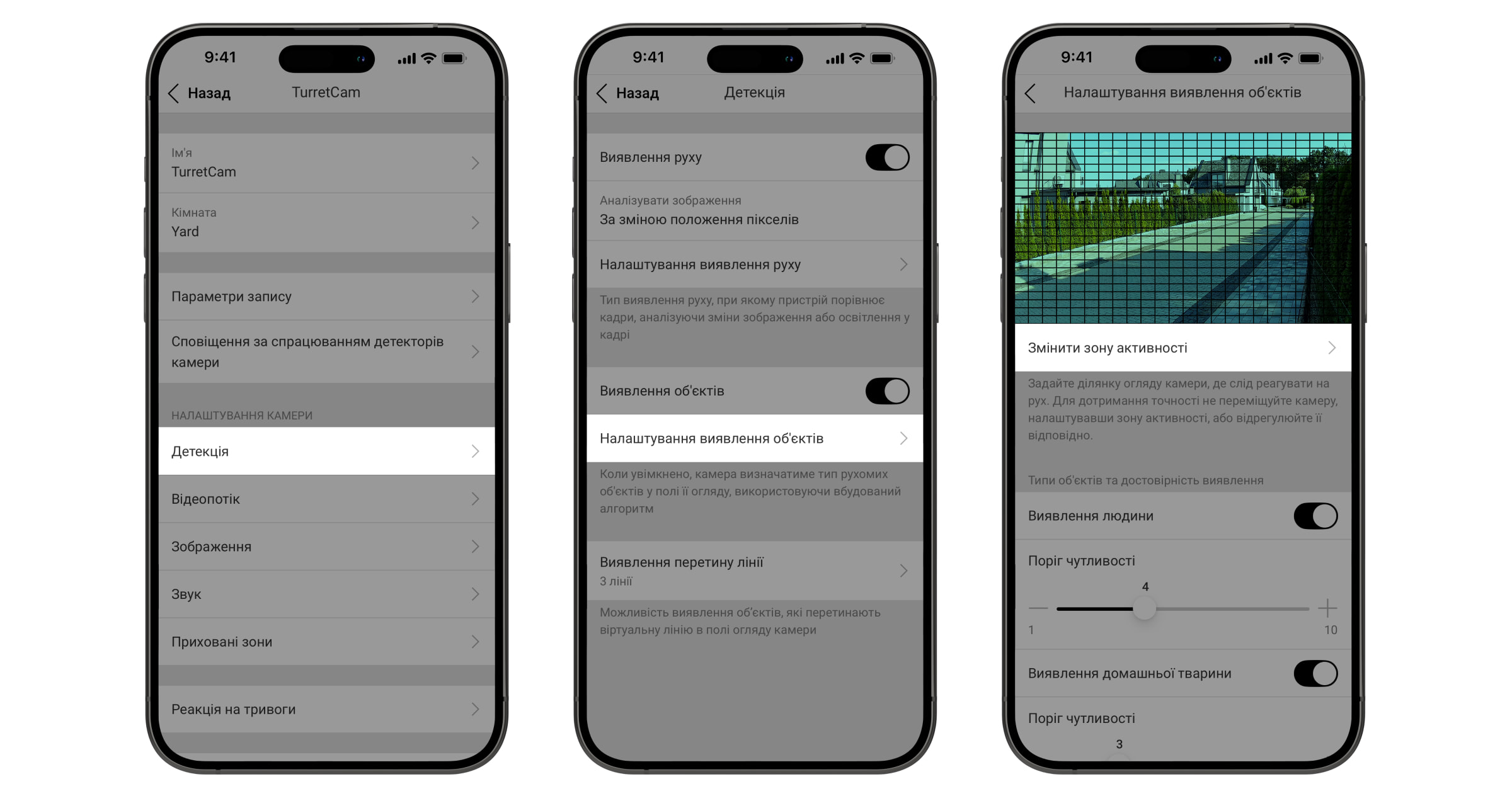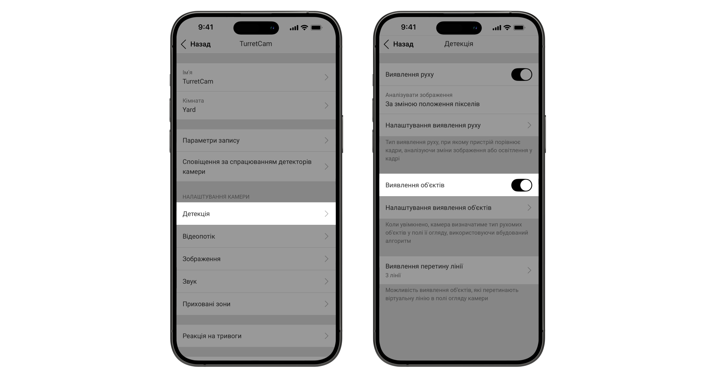 - у параметрах камери налаштовано виявлення об’єктів, а саме: