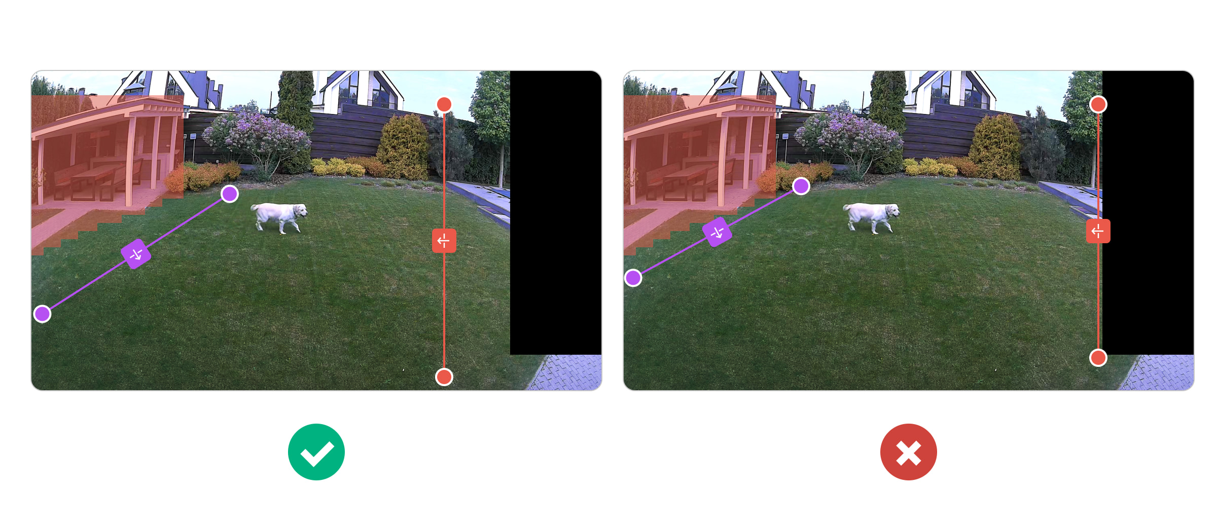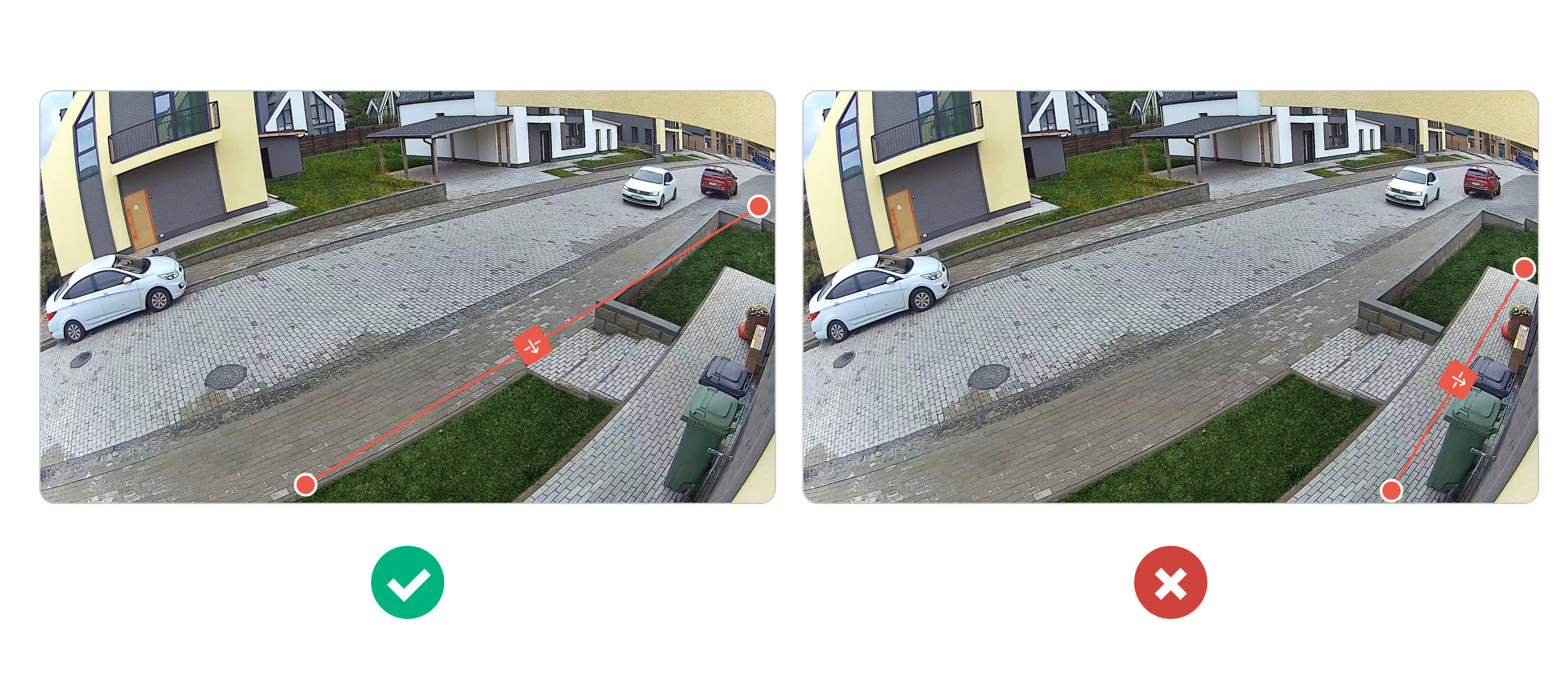 - Не розміщуйте лінію занадто близько до краю кадру. Камера може не зафіксувати перетин, оскільки обʼєкт буде виявлено вже після того, як він перетнув лінію.