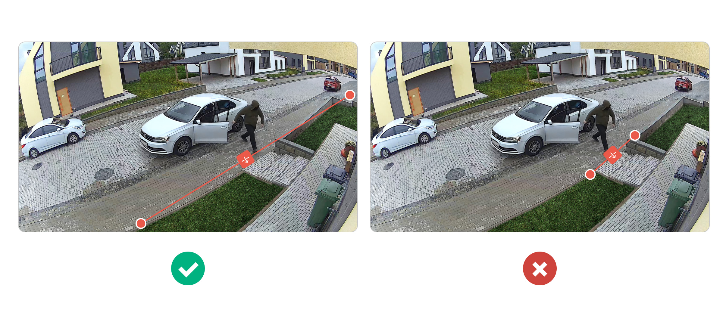 Щоб забезпечити точне виявлення перетину лінії, накресліть її відповідно до наведених нижче рекомендацій. Щоб дізнатися, як правильно налаштувати лінію, перегляньте розділ Рекомендації та найкращий досвід.