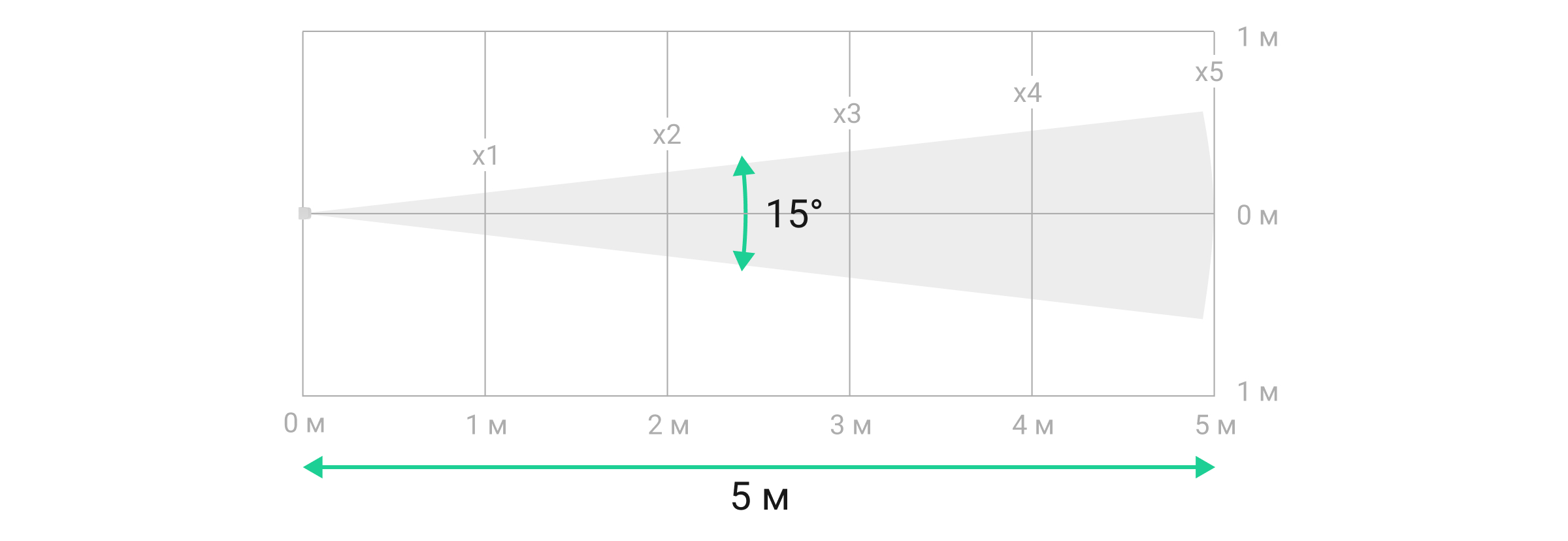 - Залиште зону виявлення датчика (горизонтальний кут огляду — 15°) і забезпечте відсутність руху в межах зони огляду датчика. Це потрібно для коректного калібрування сенсорів маскування. Під час калібрування індикатор датчика блискає зеленим кожні 0,5 с. Калібрування триває до 2 хвилин.