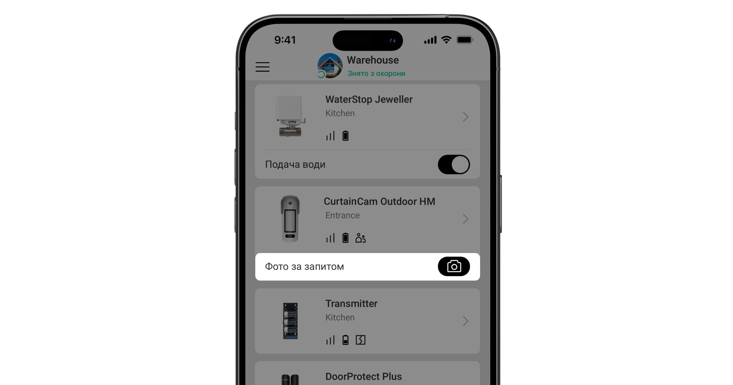 Доступні декілька видів фотоверифікації: фото за тривогою, фото за запитом, фото за сценарієм, фото за розкладом і фото за зміною режиму охорони.
