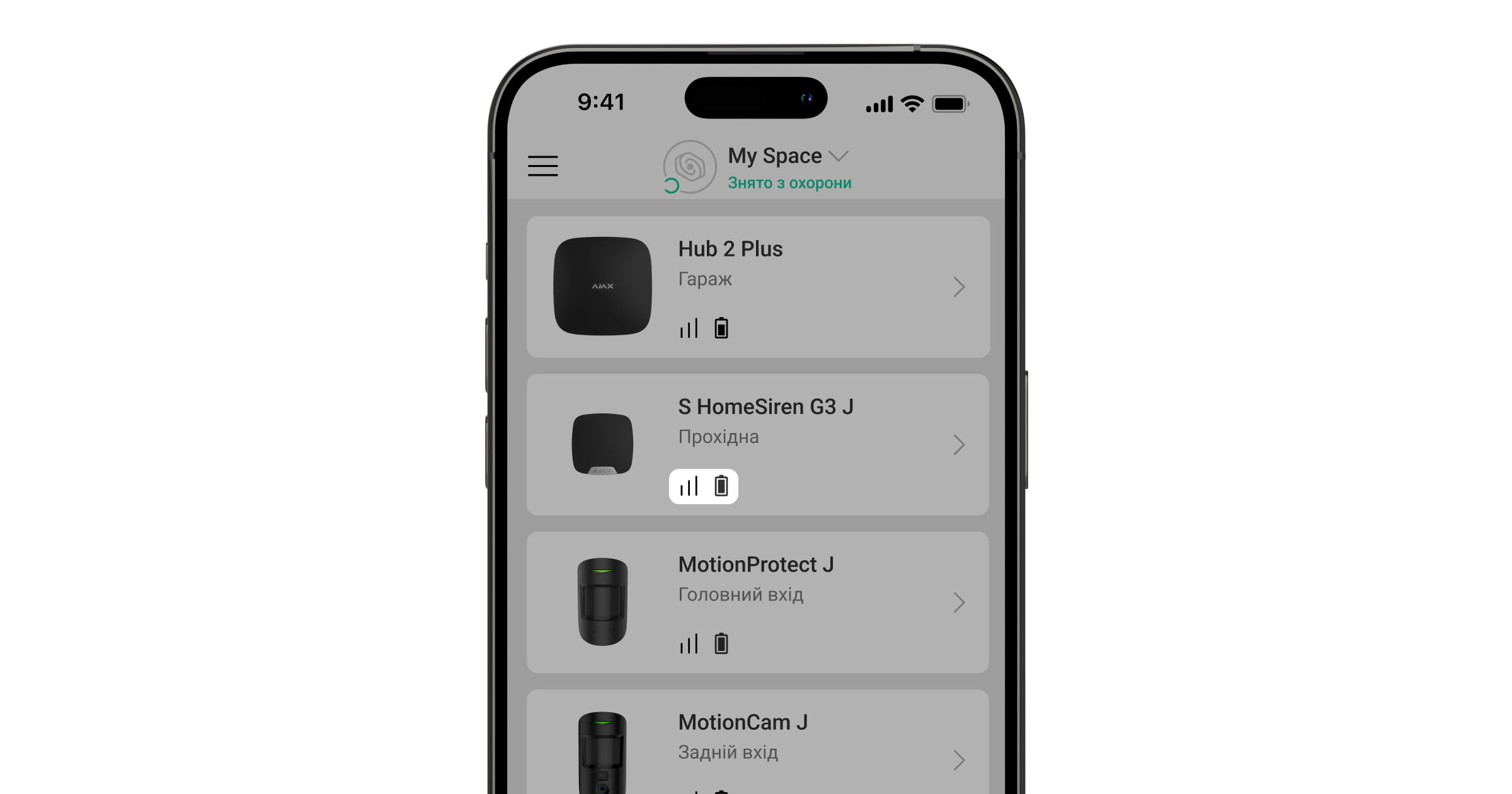 Рівень сигналу Jeweller визначається кількістю недоставлених або пошкоджених пакетів даних за певний проміжок часу. Про рівень сигналу повідомляє іконка у вкладці Пристрої