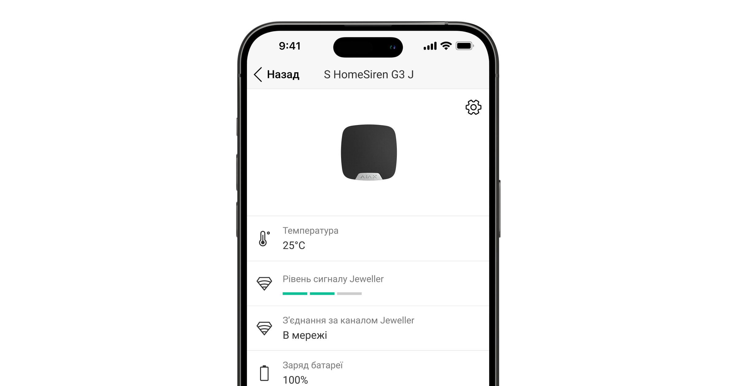 Сирена працює в системі Ajax та обмінюється даними з хабом через захищений протокол бездротового зв’язку Jeweller.