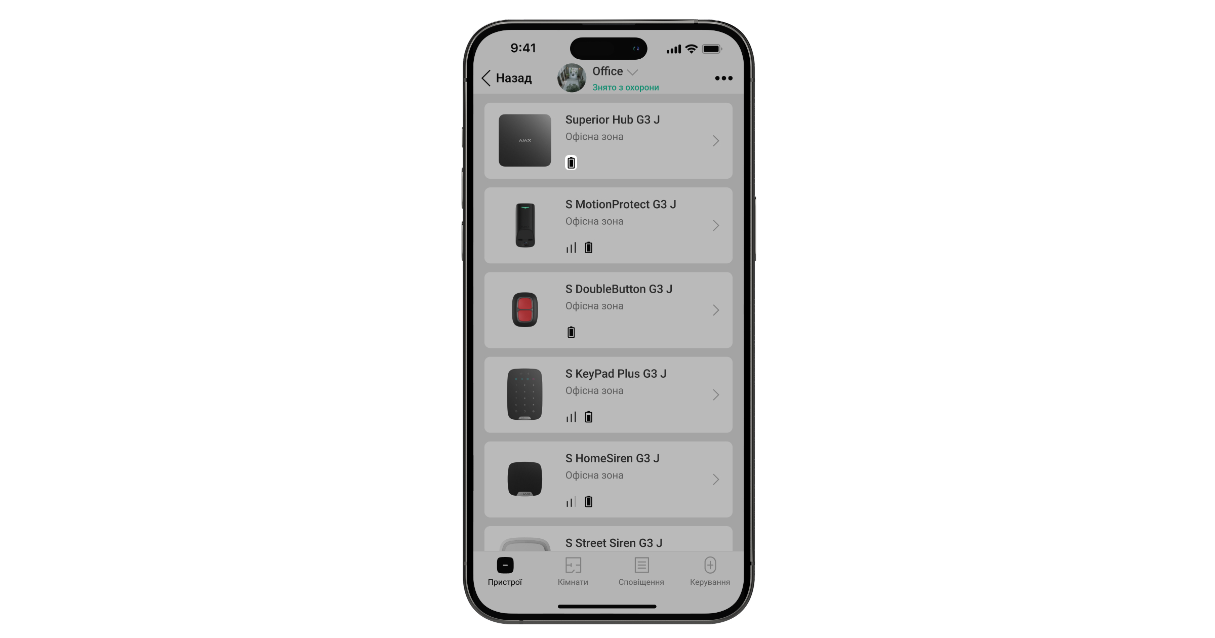 - змінено режим охорони системи в застосунку Ajax.