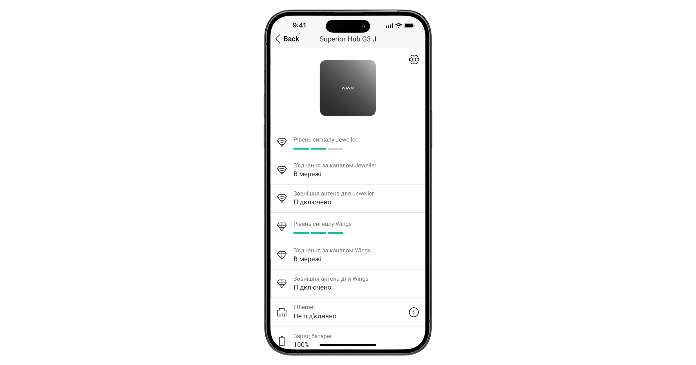 Стани Superior Hub G3 Jeweller також можна відстежувати в застосунку Ajax.