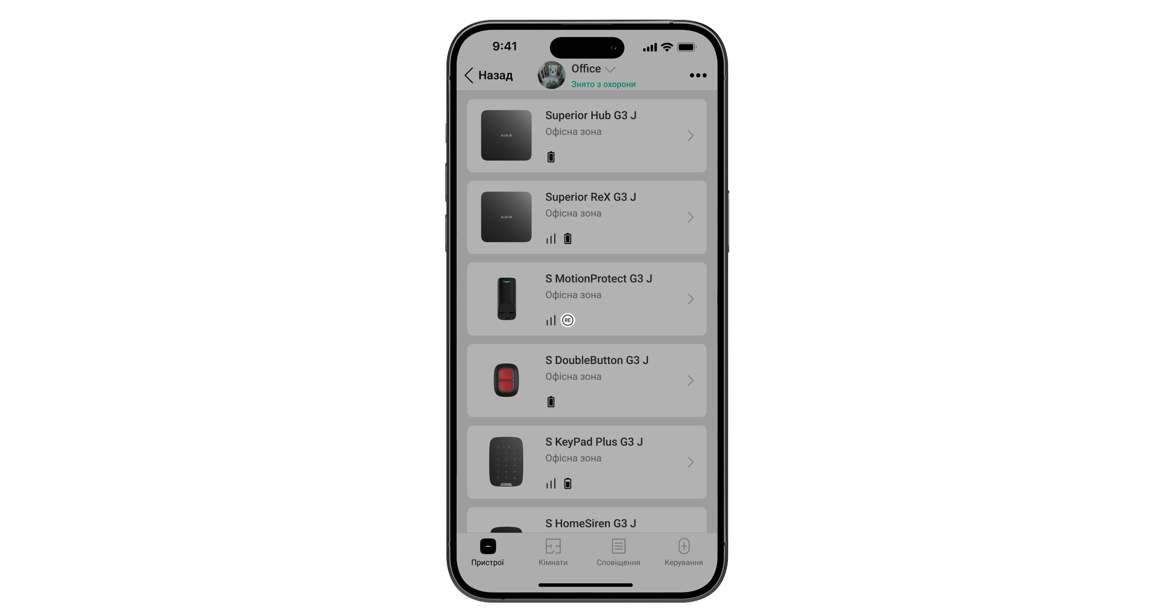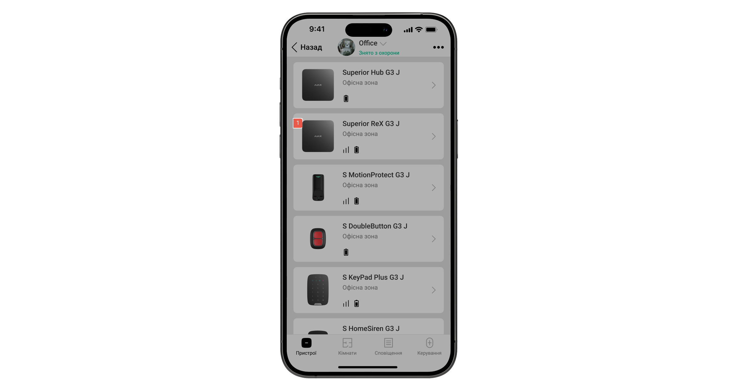 Після підключення вибрані пристрої відображатимуться в застосунку Ajax іконкою. Пристрій можна підключити лише до одного Superior ReX G3 Jeweller. Коли пристрій підключається до нового ретранслятора, він автоматично відключається від старого.